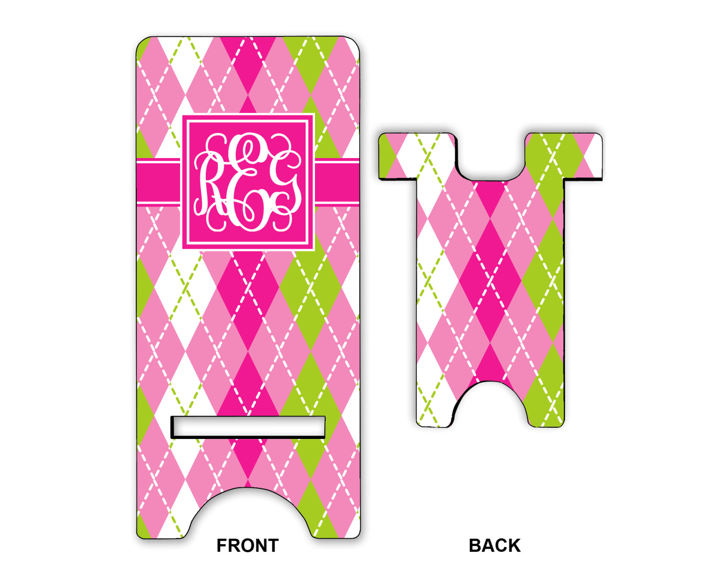 Looking for a preppy, yet still girly girl design? This pink and green argyle print with a square label and an interlocking monogram is as girly as it gets. We have created this argyle pattern in lime green, orchid pink and hot pink. For all of us girly girls and preppies and princesses, this design is a favorite!