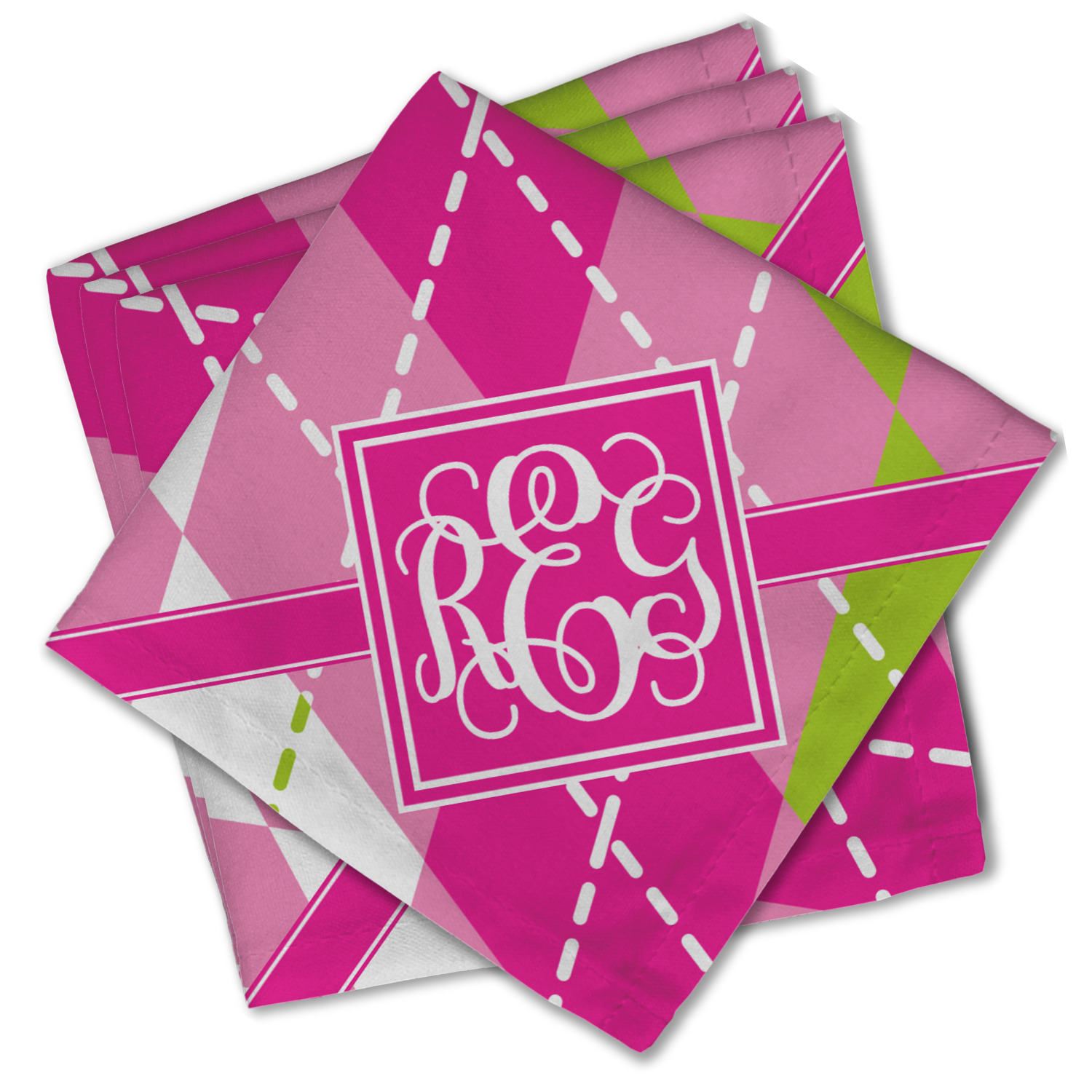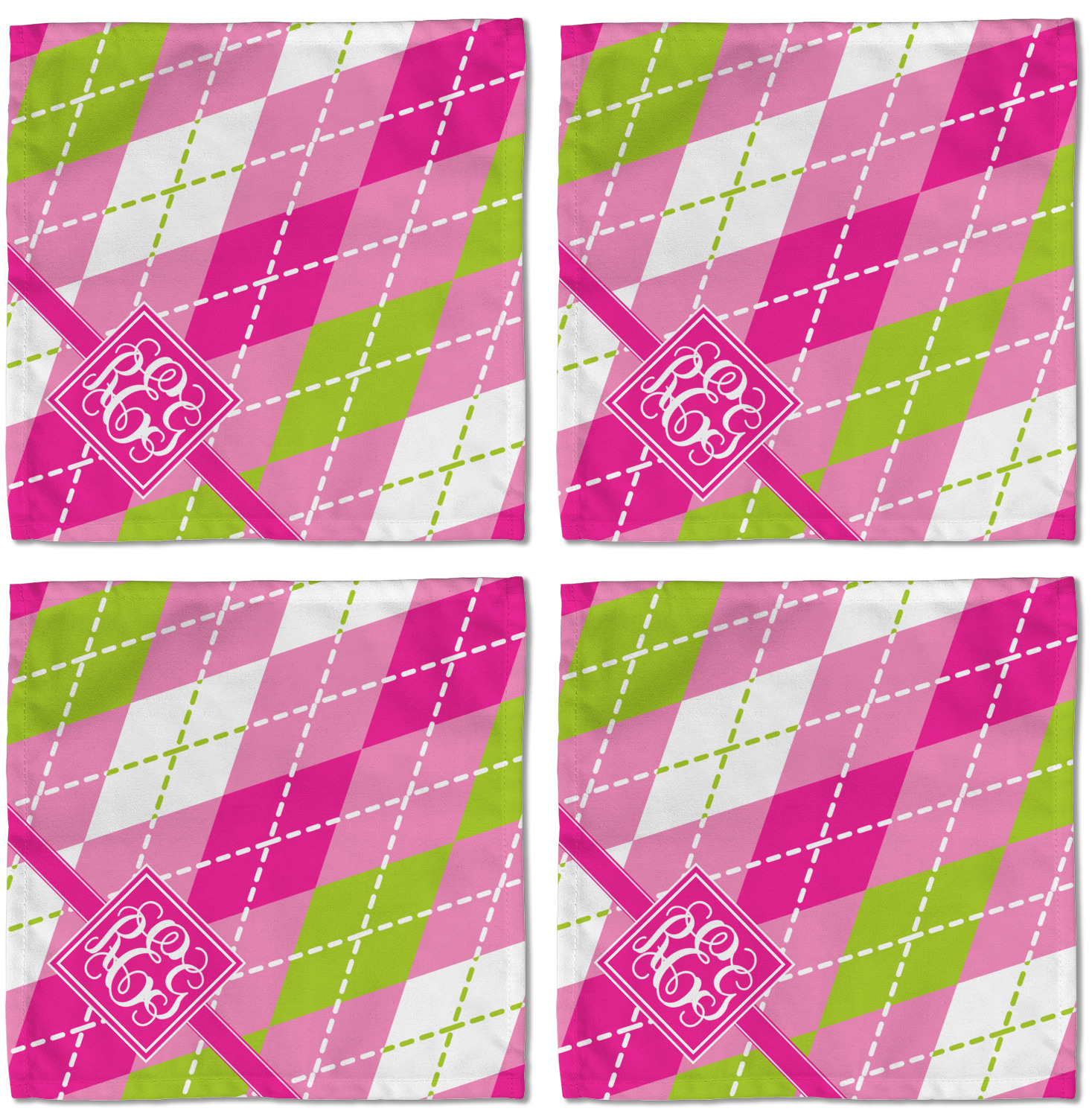 Looking for a preppy, yet still girly girl design? This pink and green argyle print with a square label and an interlocking monogram is as girly as it gets. We have created this argyle pattern in lime green, orchid pink and hot pink. For all of us girly girls and preppies and princesses, this design is a favorite!
