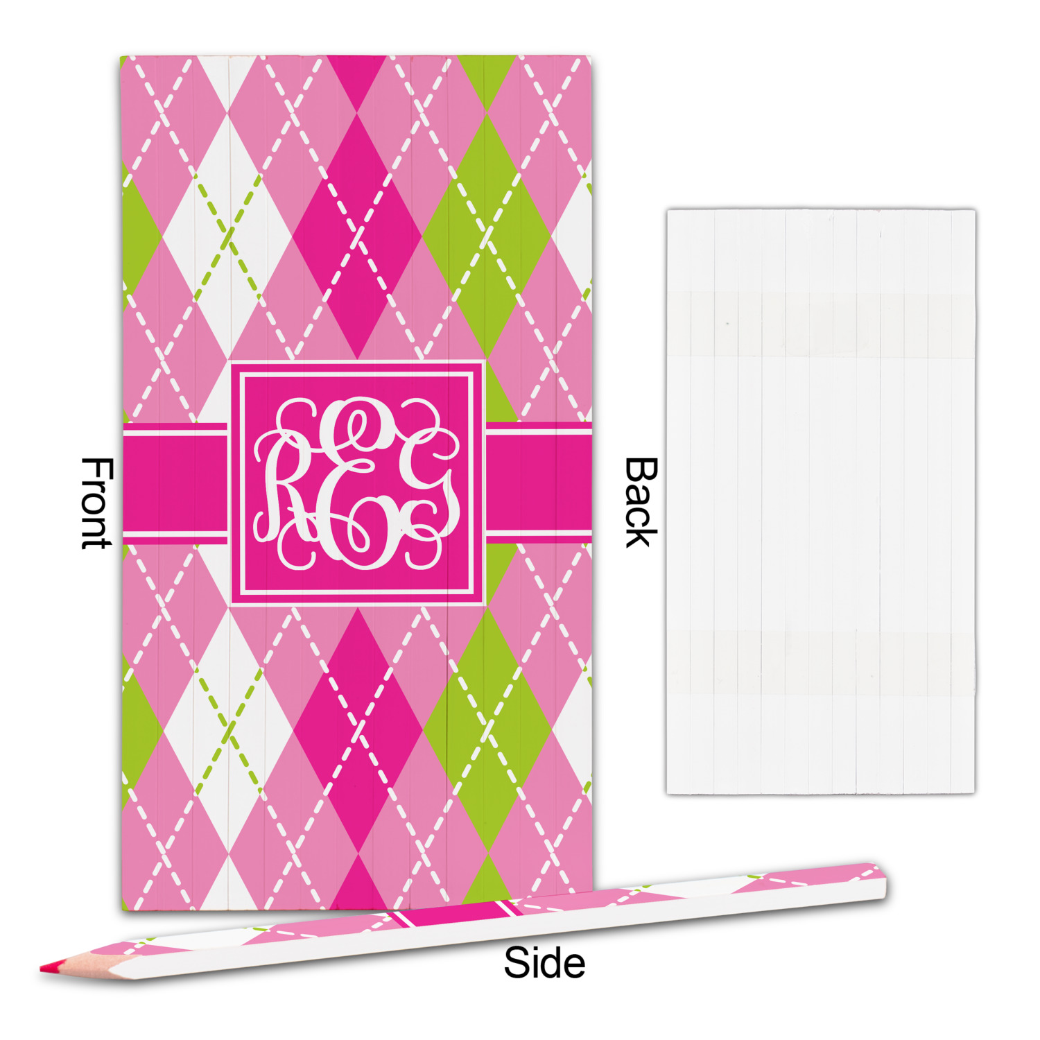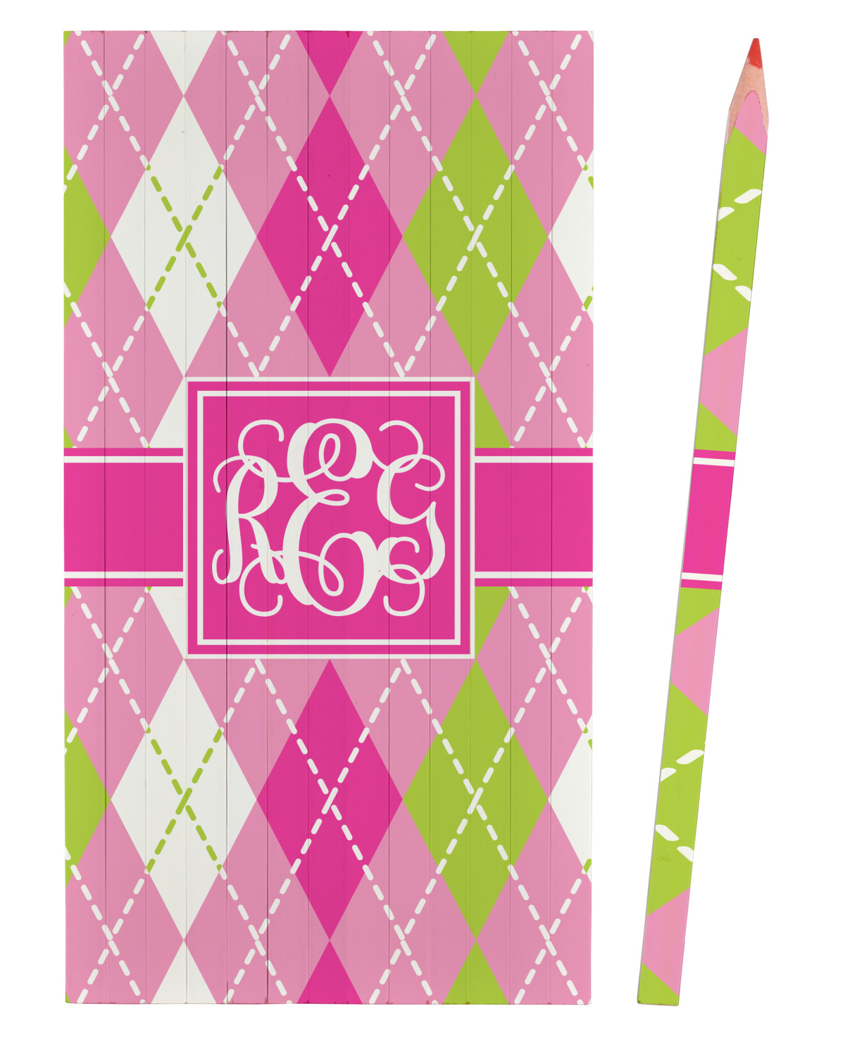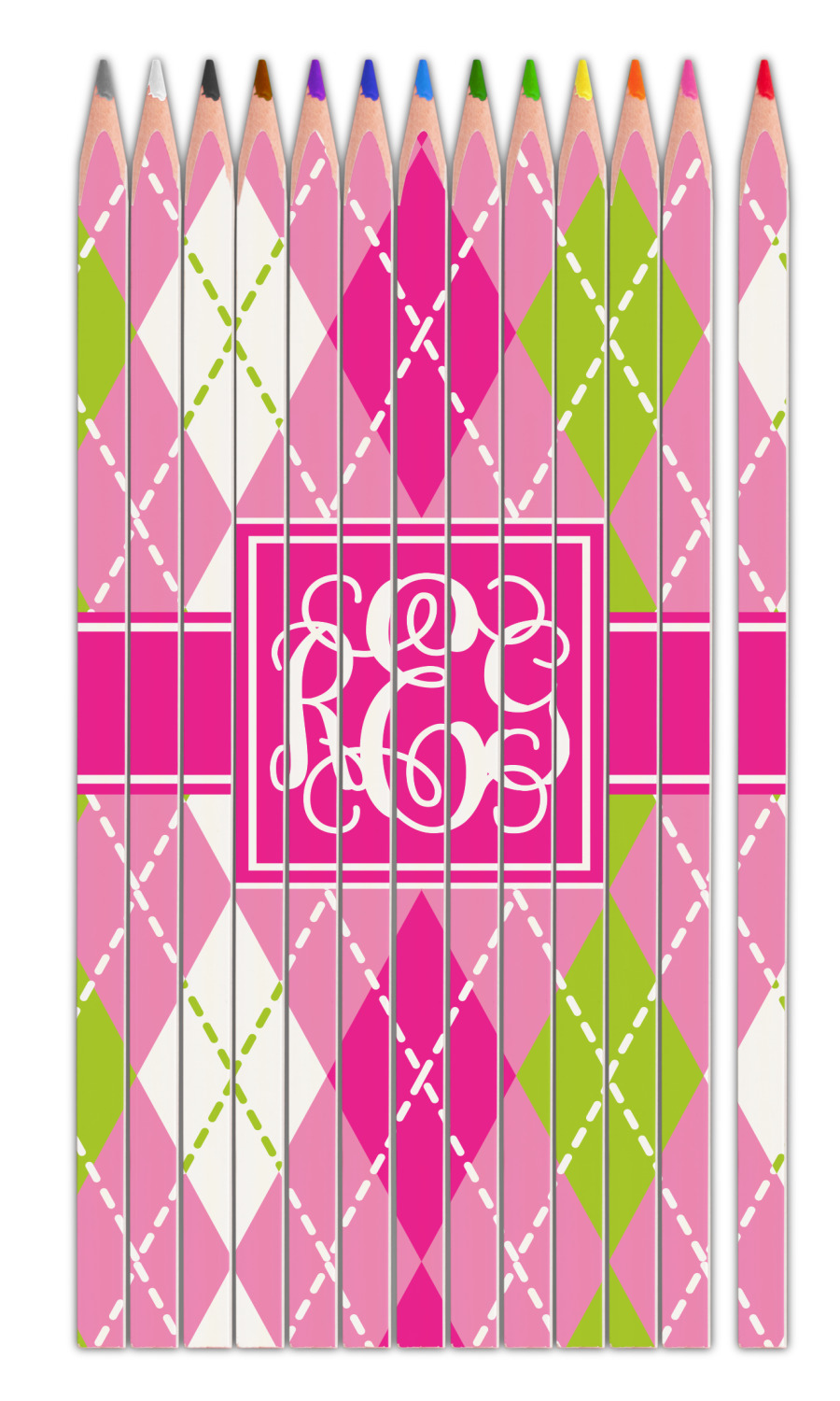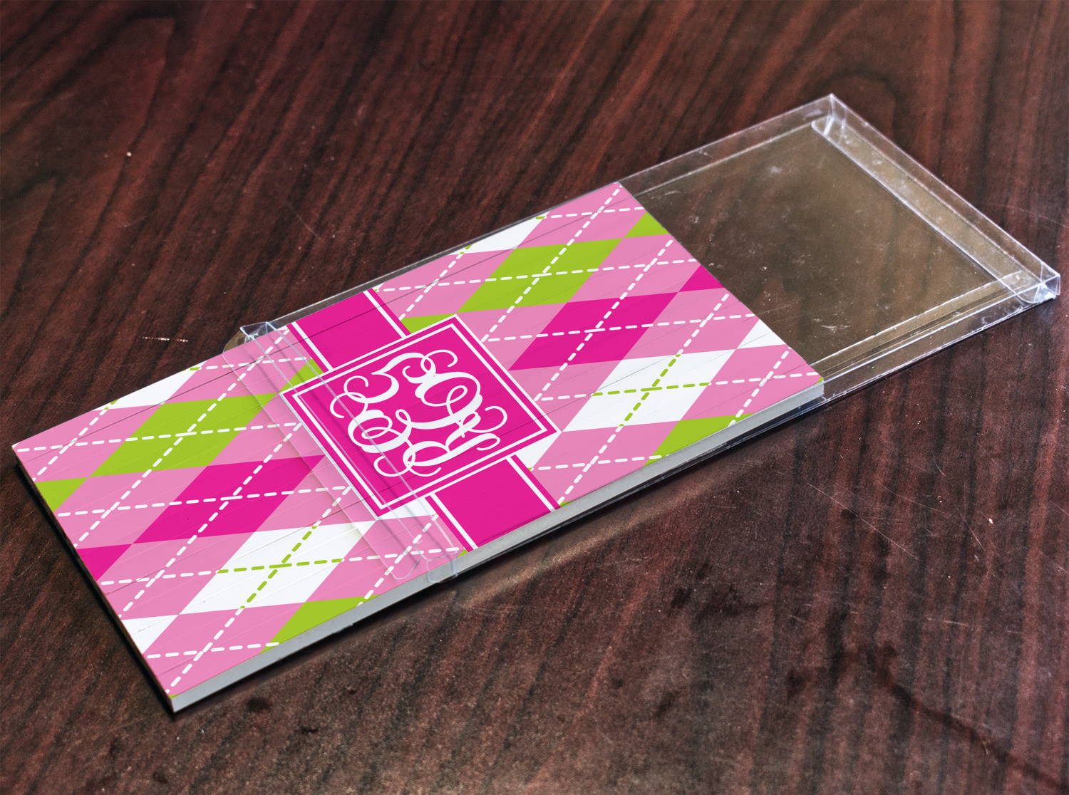 Looking for a preppy, yet still girly girl design? This pink and green argyle print with a square label and an interlocking monogram is as girly as it gets. We have created this argyle pattern in lime green, orchid pink and hot pink. For all of us girly girls and preppies and princesses, this design is a favorite!