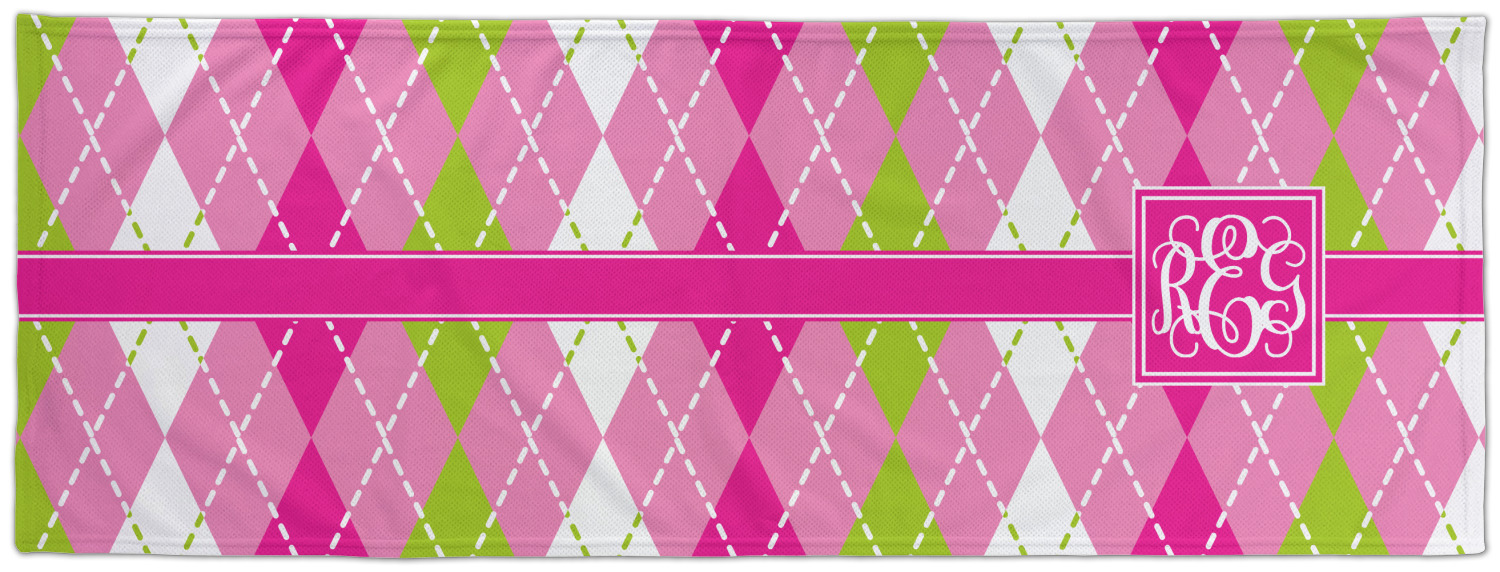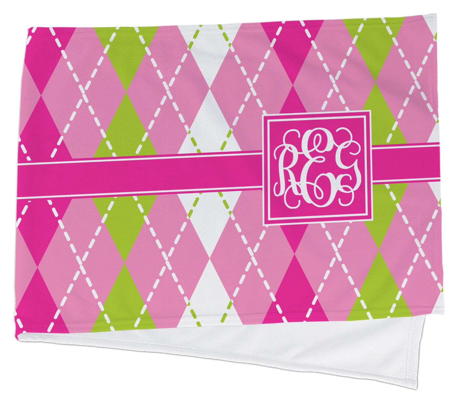 Looking for a preppy, yet still girly girl design? This pink and green argyle print with a square label and an interlocking monogram is as girly as it gets. We have created this argyle pattern in lime green, orchid pink and hot pink. For all of us girly girls and preppies and princesses, this design is a favorite!