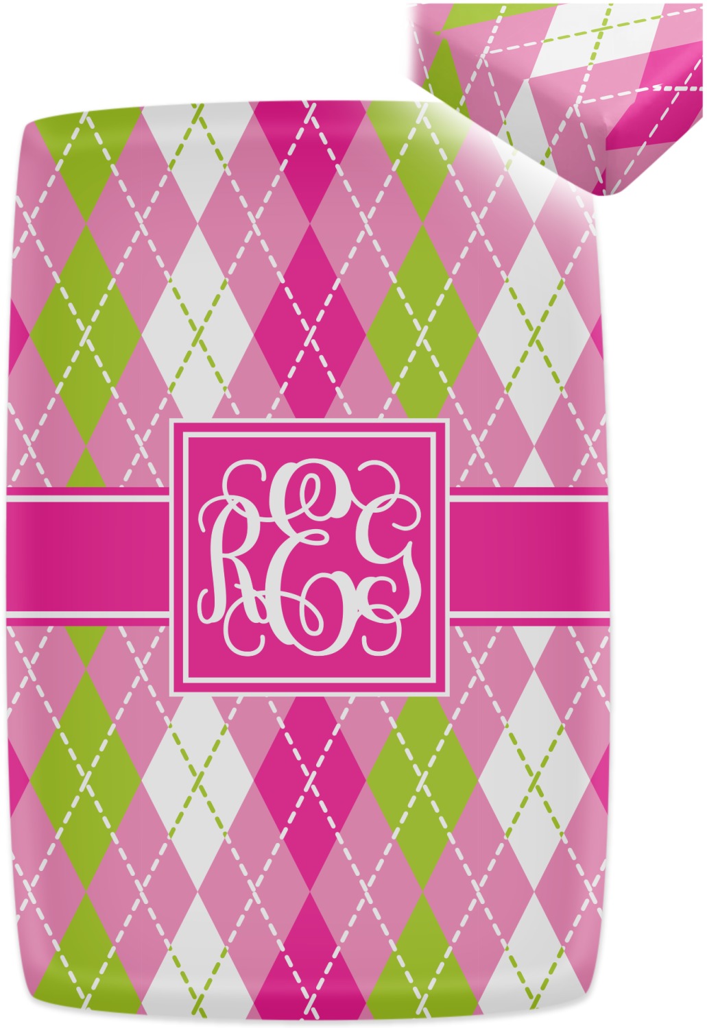 Looking for a preppy, yet still girly girl design? This pink and green argyle print with a square label and an interlocking monogram is as girly as it gets. We have created this argyle pattern in lime green, orchid pink and hot pink. For all of us girly girls and preppies and princesses, this design is a favorite!