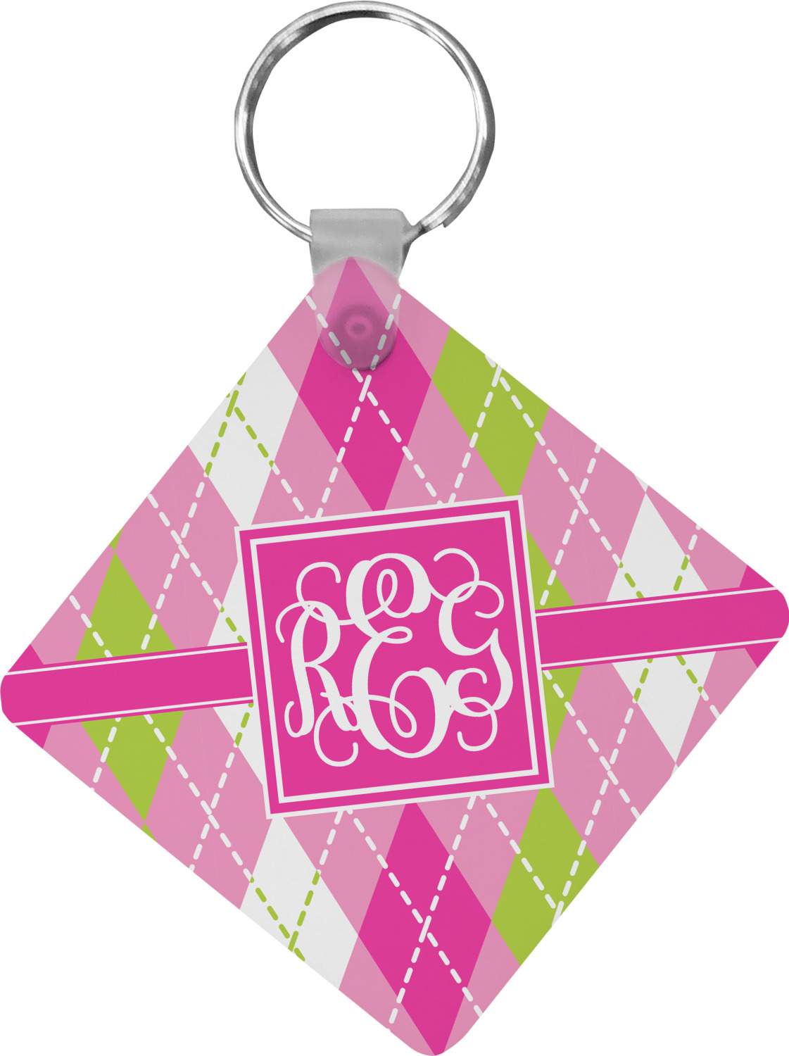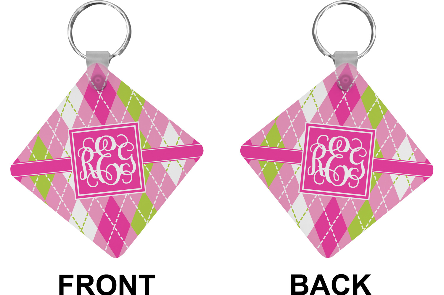 Our personalized keychains attach to the included metal, split key ring with a plastic, removable snap. Since a metal ring is included with your purchase, you have the liberty to keep your keys together on the ring, with or without your unique keychain. We offer this keychain in three different shapes: circle, heart, or diamond. We print your personalized design(s) on both sides of the key chain, and the surface has a glossy, reflective finish that only emphasizes your design. Each keychain is approximately 2.25 by 2.25 inches.