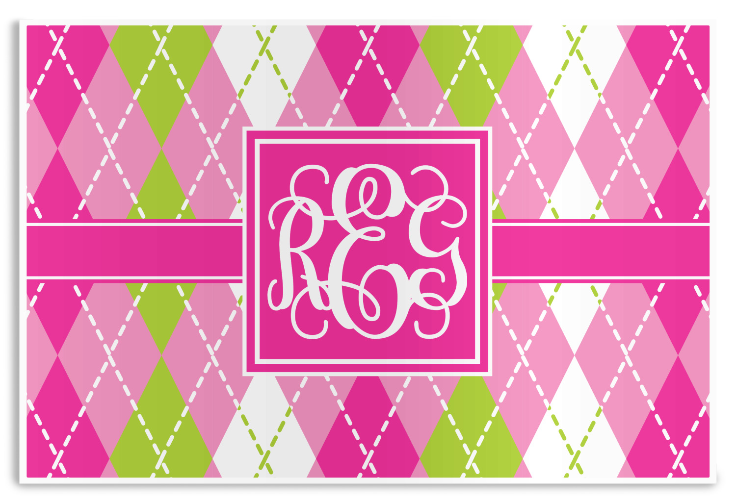 Looking for a preppy, yet still girly girl design? This pink and green argyle print with a square label and an interlocking monogram is as girly as it gets. We have created this argyle pattern in lime green, orchid pink and hot pink. For all of us girly girls and preppies and princesses, this design is a favorite!