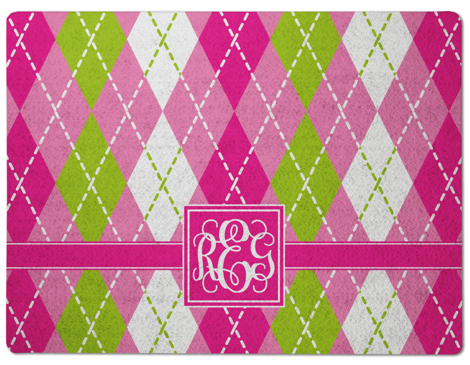 Looking for a preppy, yet still girly girl design? This pink and green argyle print with a square label and an interlocking monogram is as girly as it gets. We have created this argyle pattern in lime green, orchid pink and hot pink. For all of us girly girls and preppies and princesses, this design is a favorite!