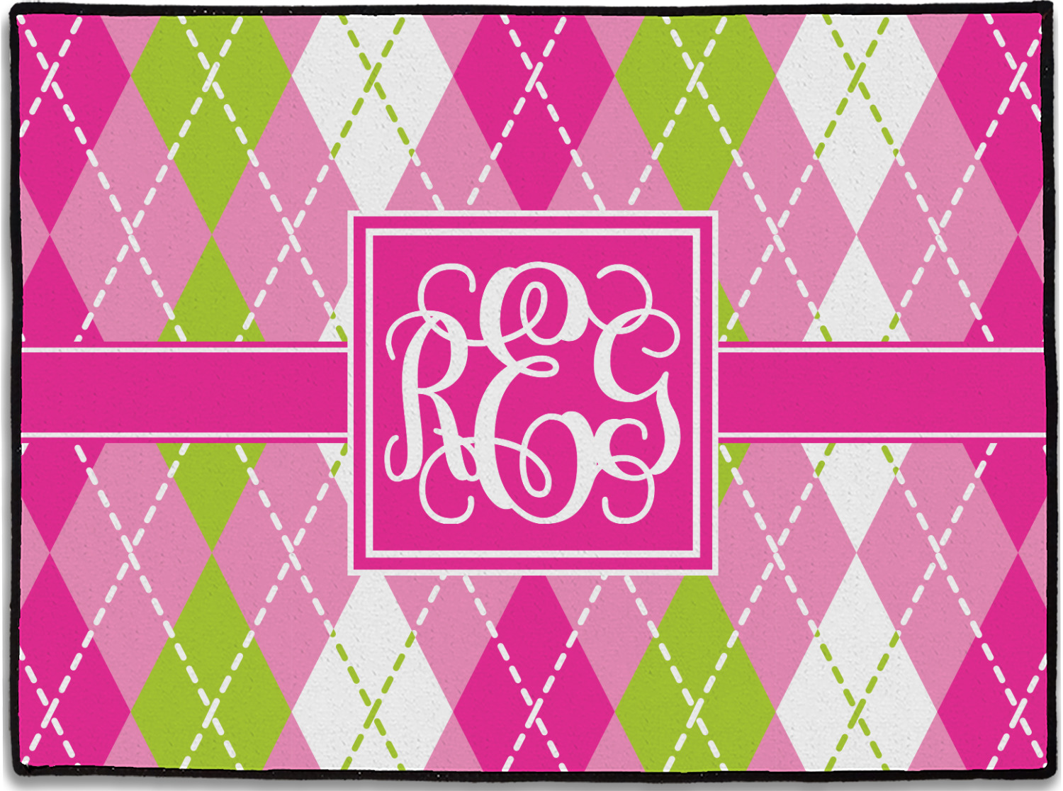 Looking for a preppy, yet still girly girl design? This pink and green argyle print with a square label and an interlocking monogram is as girly as it gets. We have created this argyle pattern in lime green, orchid pink and hot pink. For all of us girly girls and preppies and princesses, this design is a favorite!