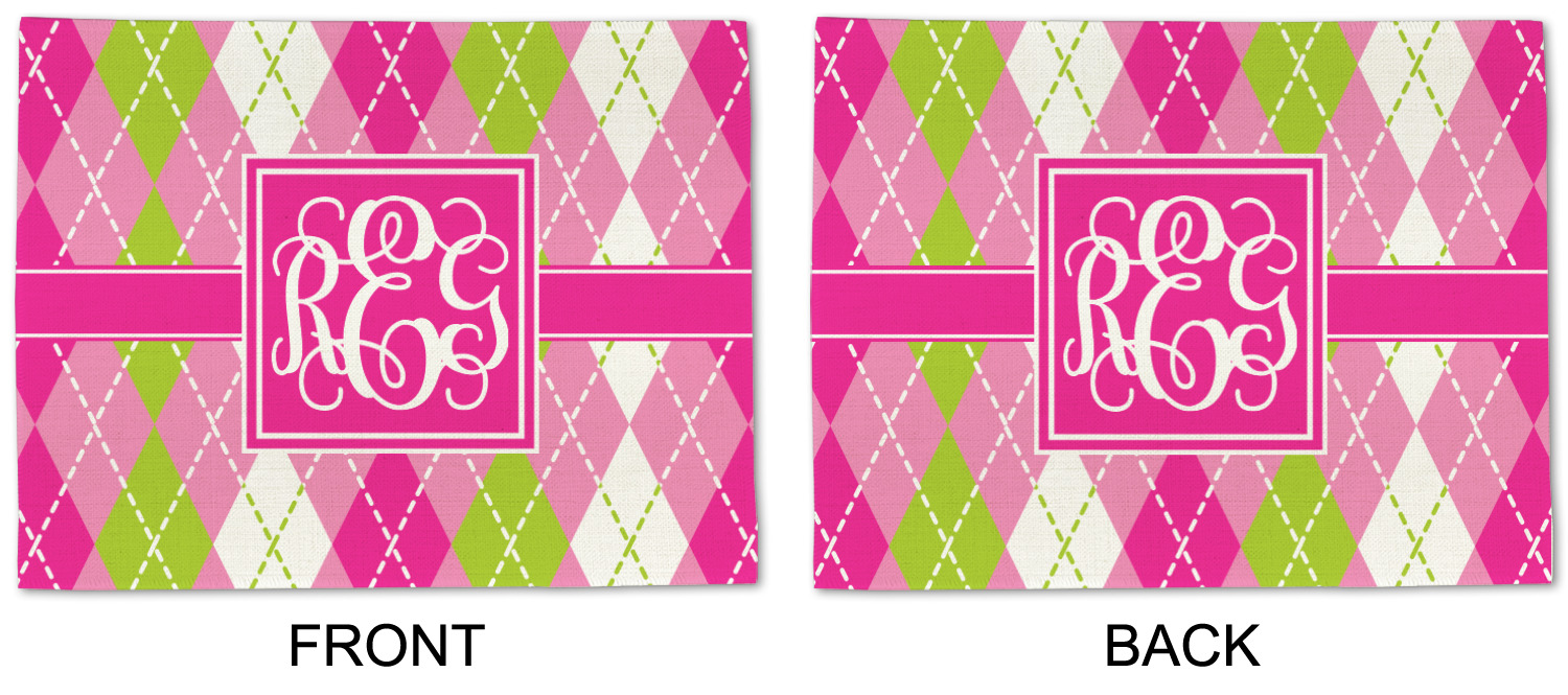 Looking for a preppy, yet still girly girl design? This pink and green argyle print with a square label and an interlocking monogram is as girly as it gets. We have created this argyle pattern in lime green, orchid pink and hot pink. For all of us girly girls and preppies and princesses, this design is a favorite!
