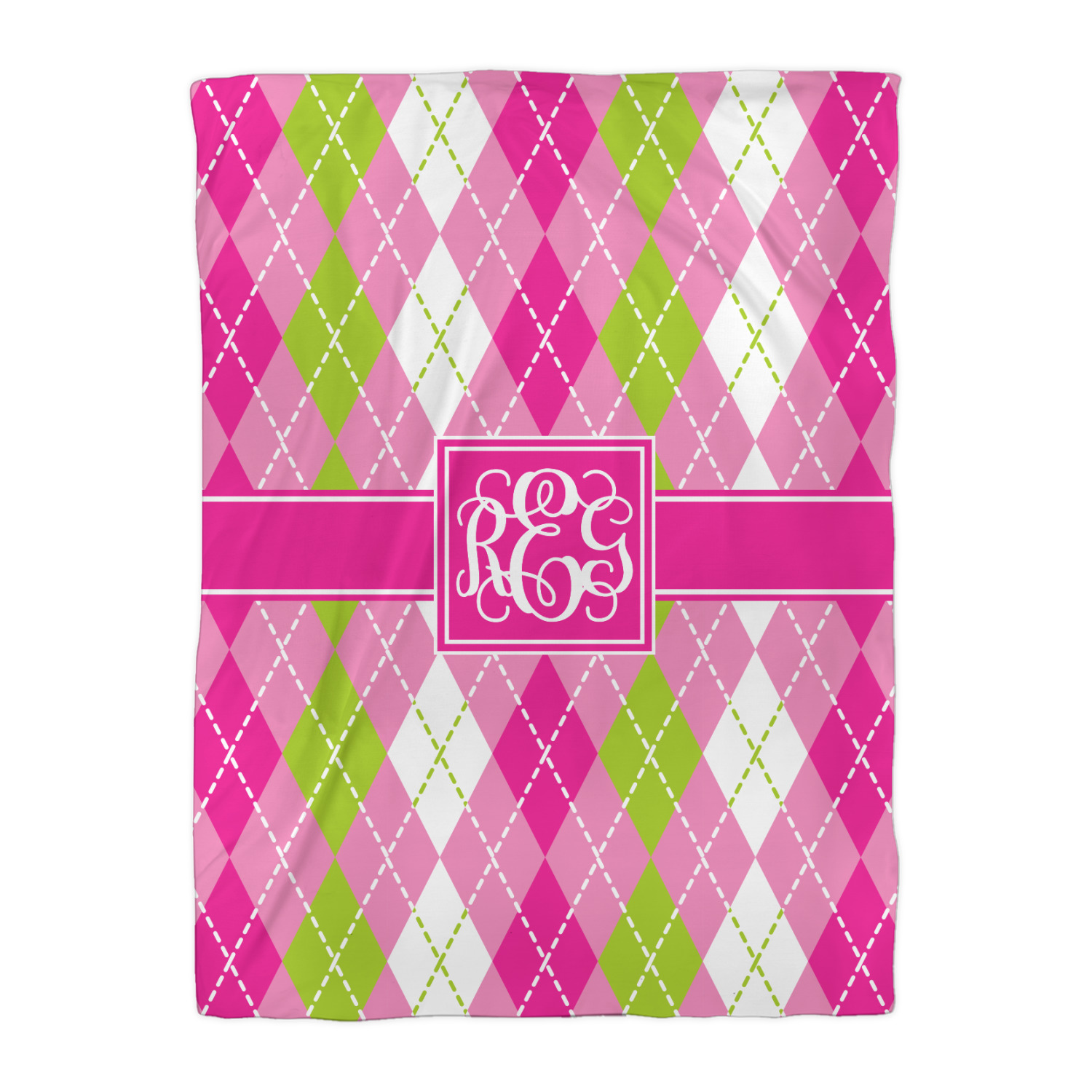 Looking for a preppy, yet still girly girl design? This pink and green argyle print with a square label and an interlocking monogram is as girly as it gets. We have created this argyle pattern in lime green, orchid pink and hot pink. For all of us girly girls and preppies and princesses, this design is a favorite!