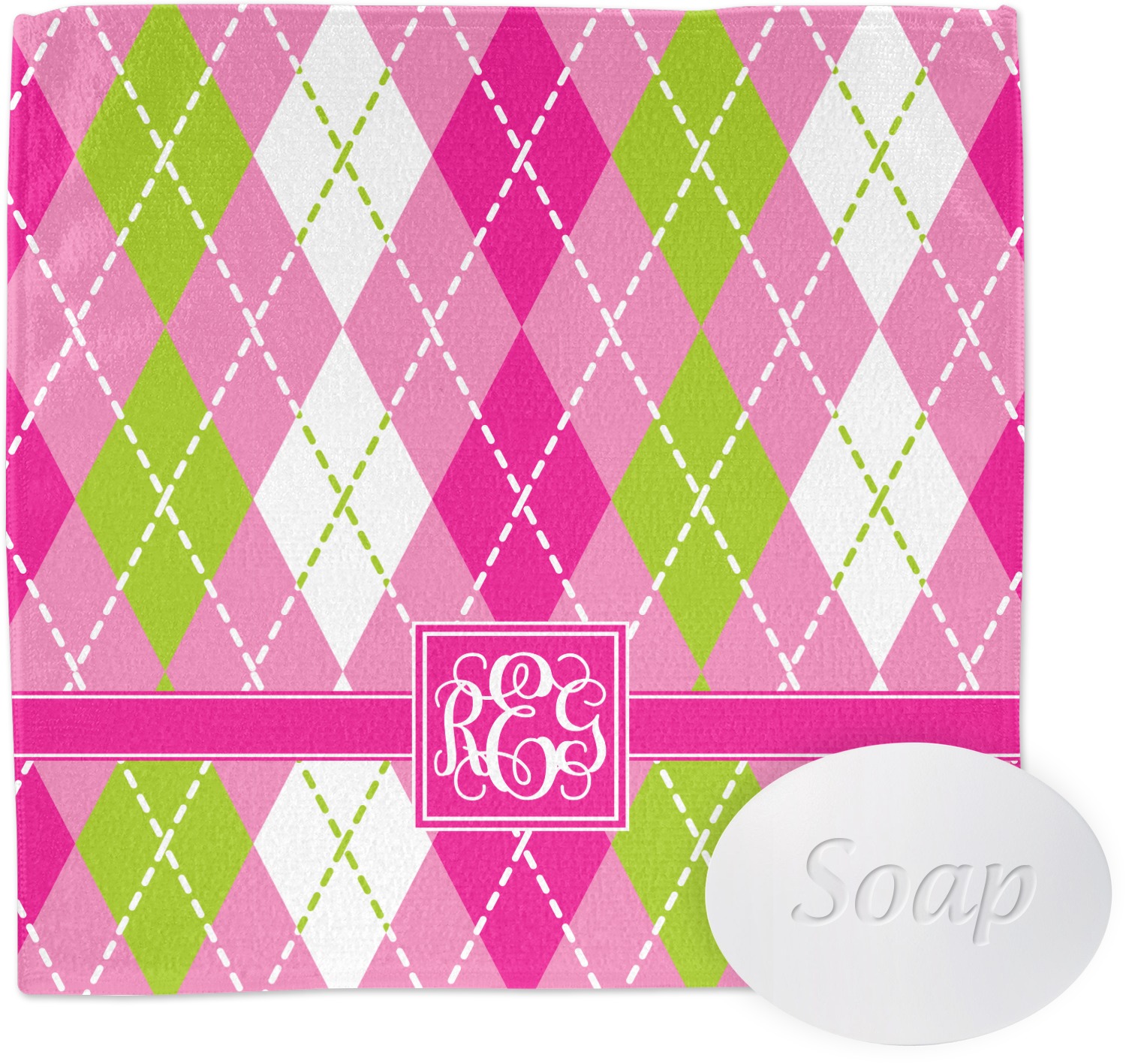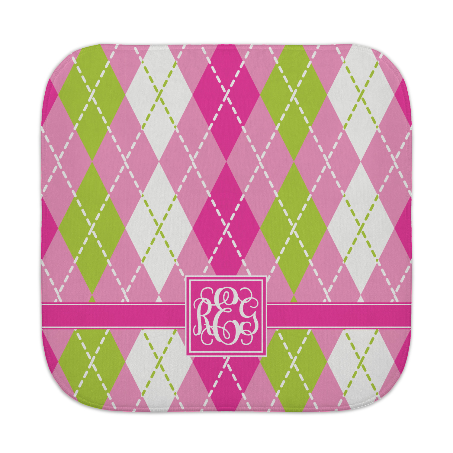 Looking for a preppy, yet still girly girl design? This pink and green argyle print with a square label and an interlocking monogram is as girly as it gets. We have created this argyle pattern in lime green, orchid pink and hot pink. For all of us girly girls and preppies and princesses, this design is a favorite!