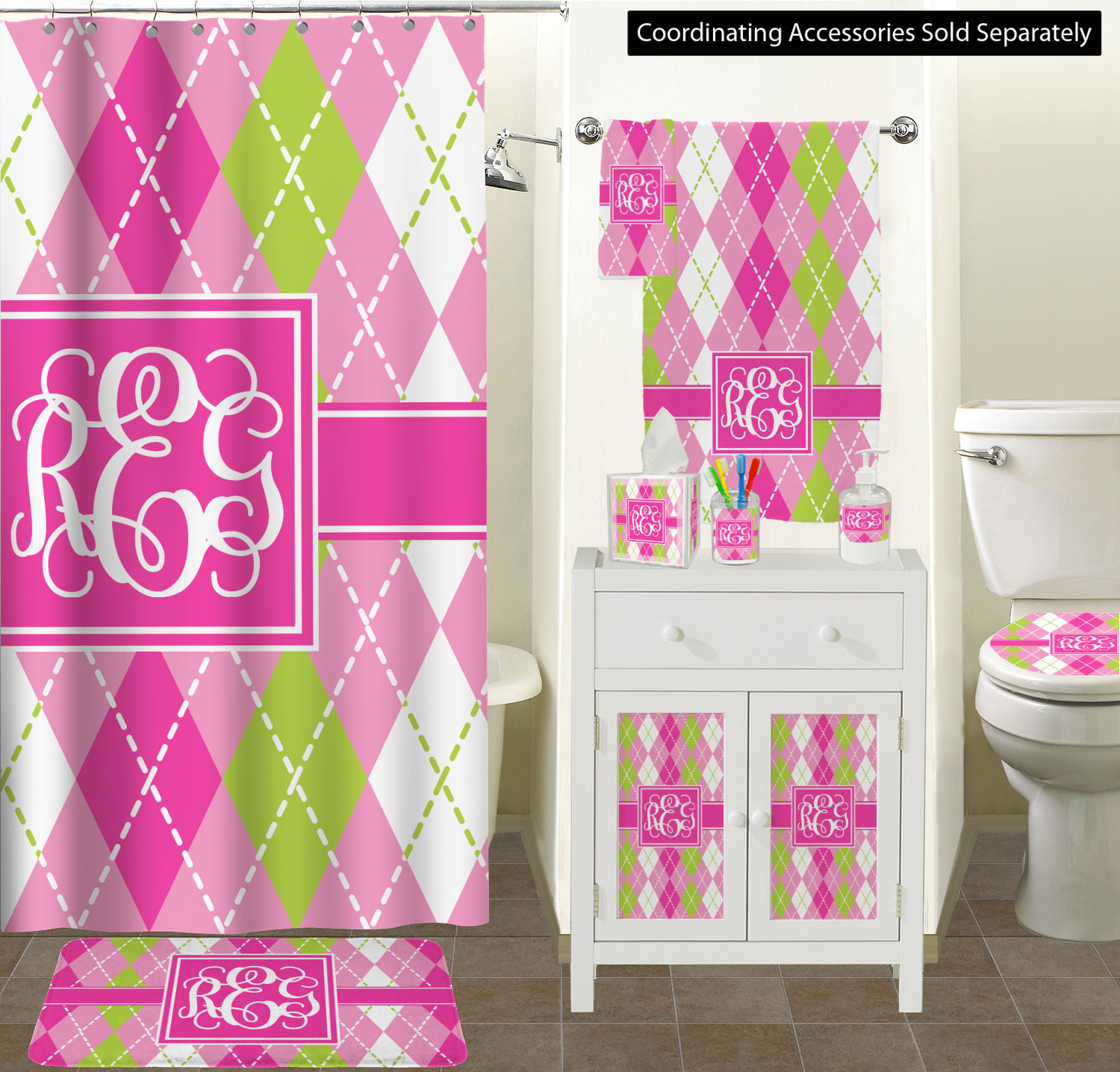 Looking for a preppy, yet still girly girl design? This pink and green argyle print with a square label and an interlocking monogram is as girly as it gets. We have created this argyle pattern in lime green, orchid pink and hot pink. For all of us girly girls and preppies and princesses, this design is a favorite!