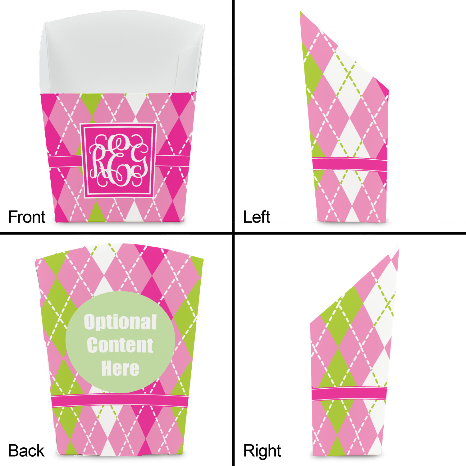 These favor boxes are printed in full color on quality cardstock - so coordinating the french fry favor boxes to match your event's themes or colors should be a breeze. You can upload your own design including artwork, logos or photos