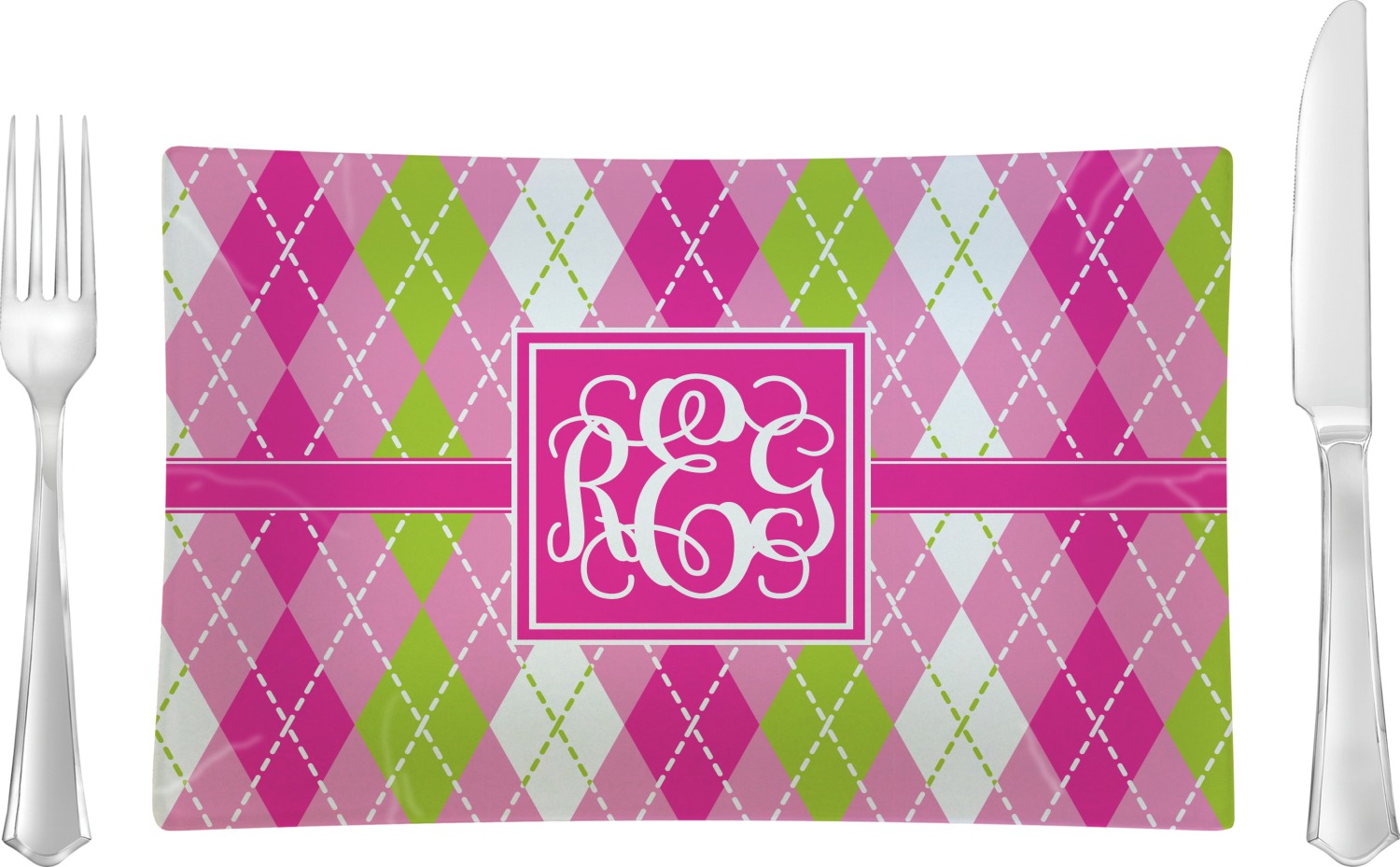 Looking for a preppy, yet still girly girl design? This pink and green argyle print with a square label and an interlocking monogram is as girly as it gets. We have created this argyle pattern in lime green, orchid pink and hot pink. For all of us girly girls and preppies and princesses, this design is a favorite!