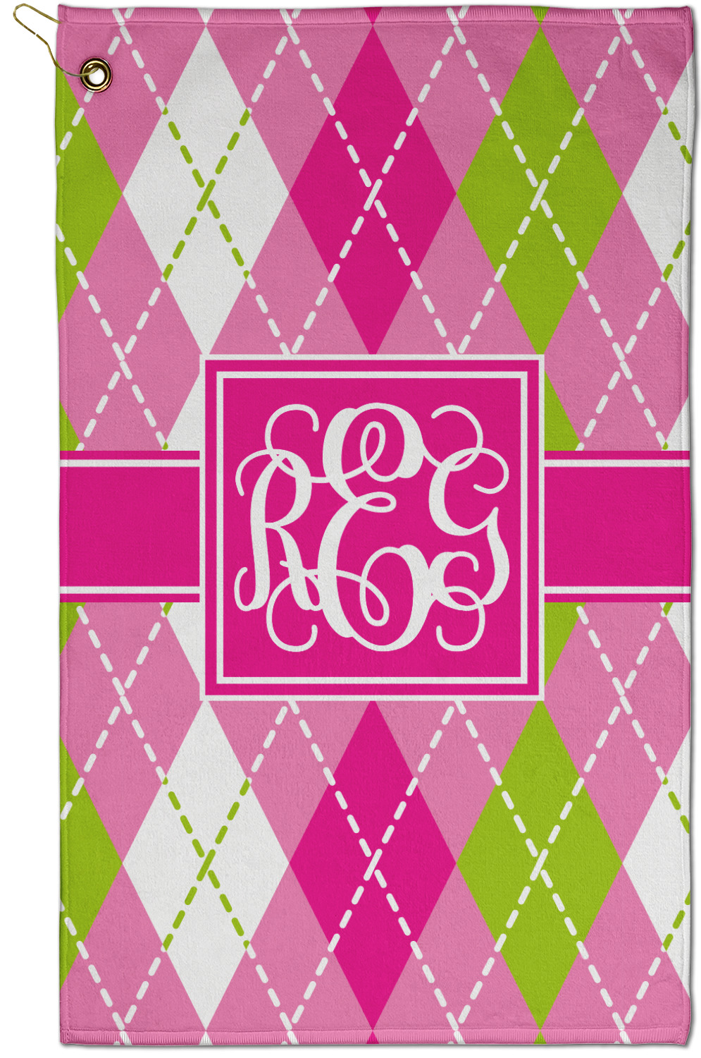 Looking for a preppy, yet still girly girl design? This pink and green argyle print with a square label and an interlocking monogram is as girly as it gets. We have created this argyle pattern in lime green, orchid pink and hot pink. For all of us girly girls and preppies and princesses, this design is a favorite!