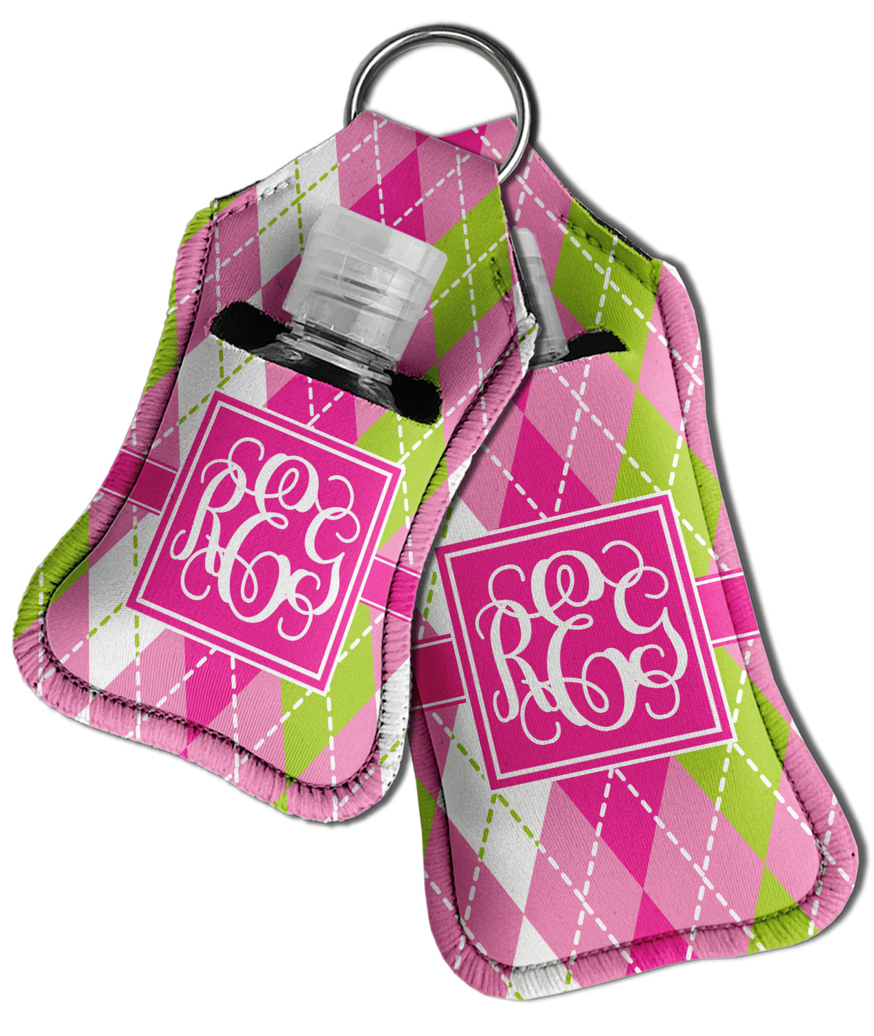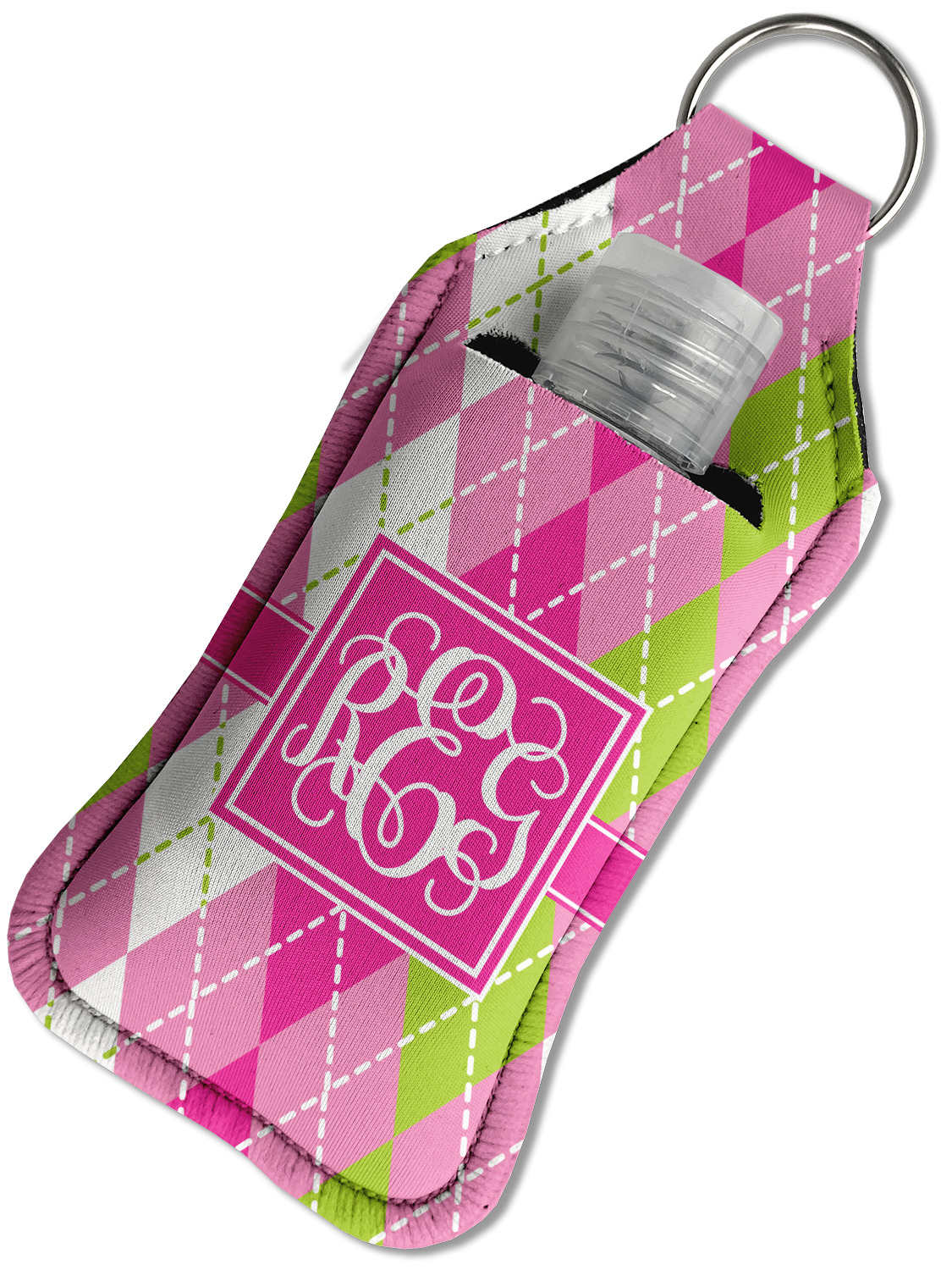 Each hand sanitizer holder comes with its own empty travel-sized, refillable hand sanitizer sure to fit snug in your customized sanitizer case! Our hand sanitizer cases are a durable, yet soft neoprene material sure to last any daily activities or travel agenda. Customize and personalize a hand sanitizer bottle holder with one of our two sizes - small (4.25" x 2.25") or large (5.5" x 2.5"). Each travel sanitizer holder comes with a keyring for attachment on bags, keys, or more!