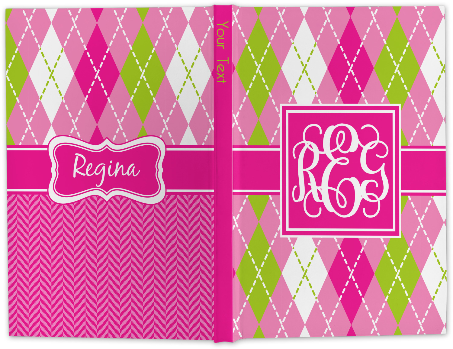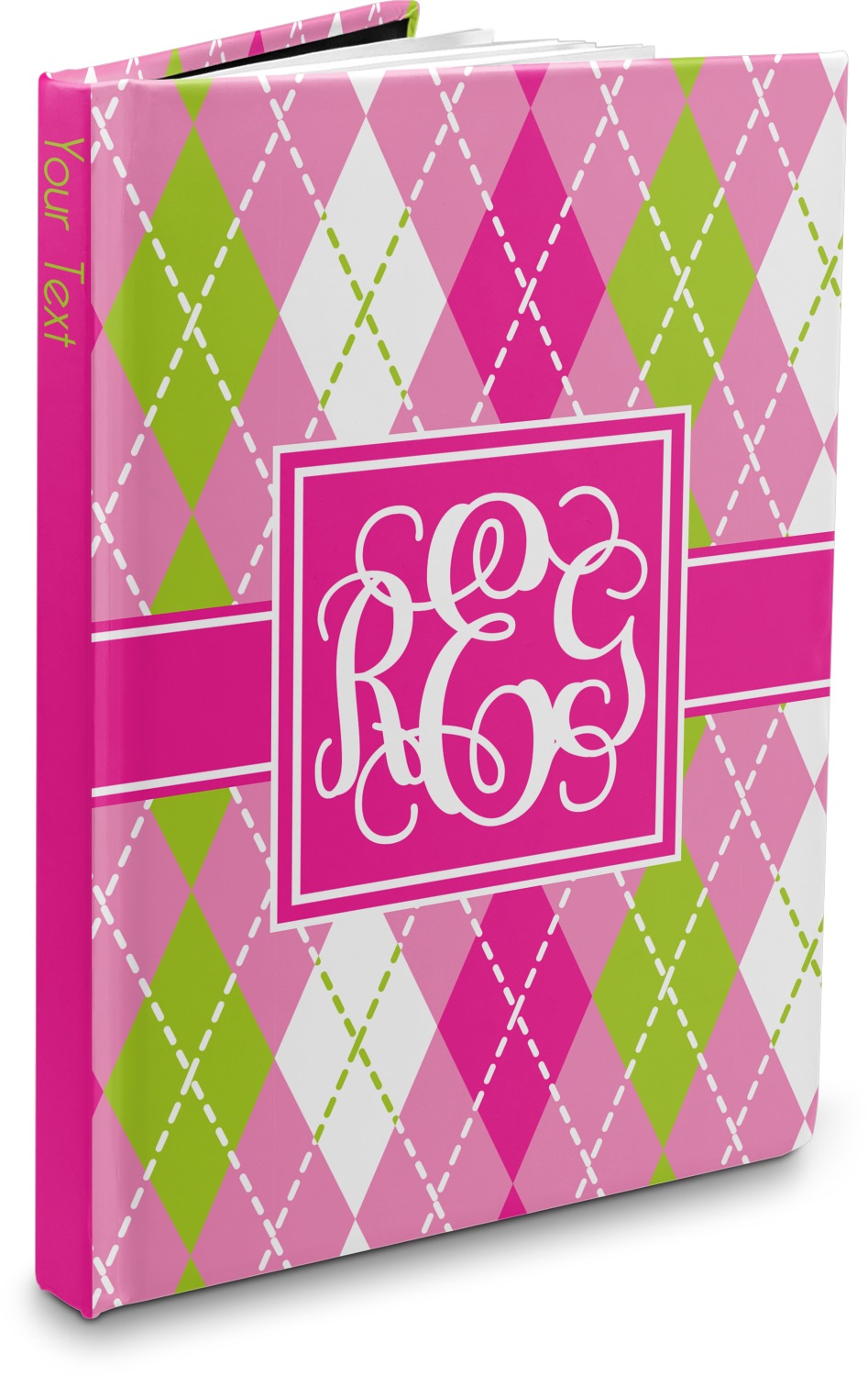 Looking for a preppy, yet still girly girl design? This pink and green argyle print with a square label and an interlocking monogram is as girly as it gets. We have created this argyle pattern in lime green, orchid pink and hot pink. For all of us girly girls and preppies and princesses, this design is a favorite!