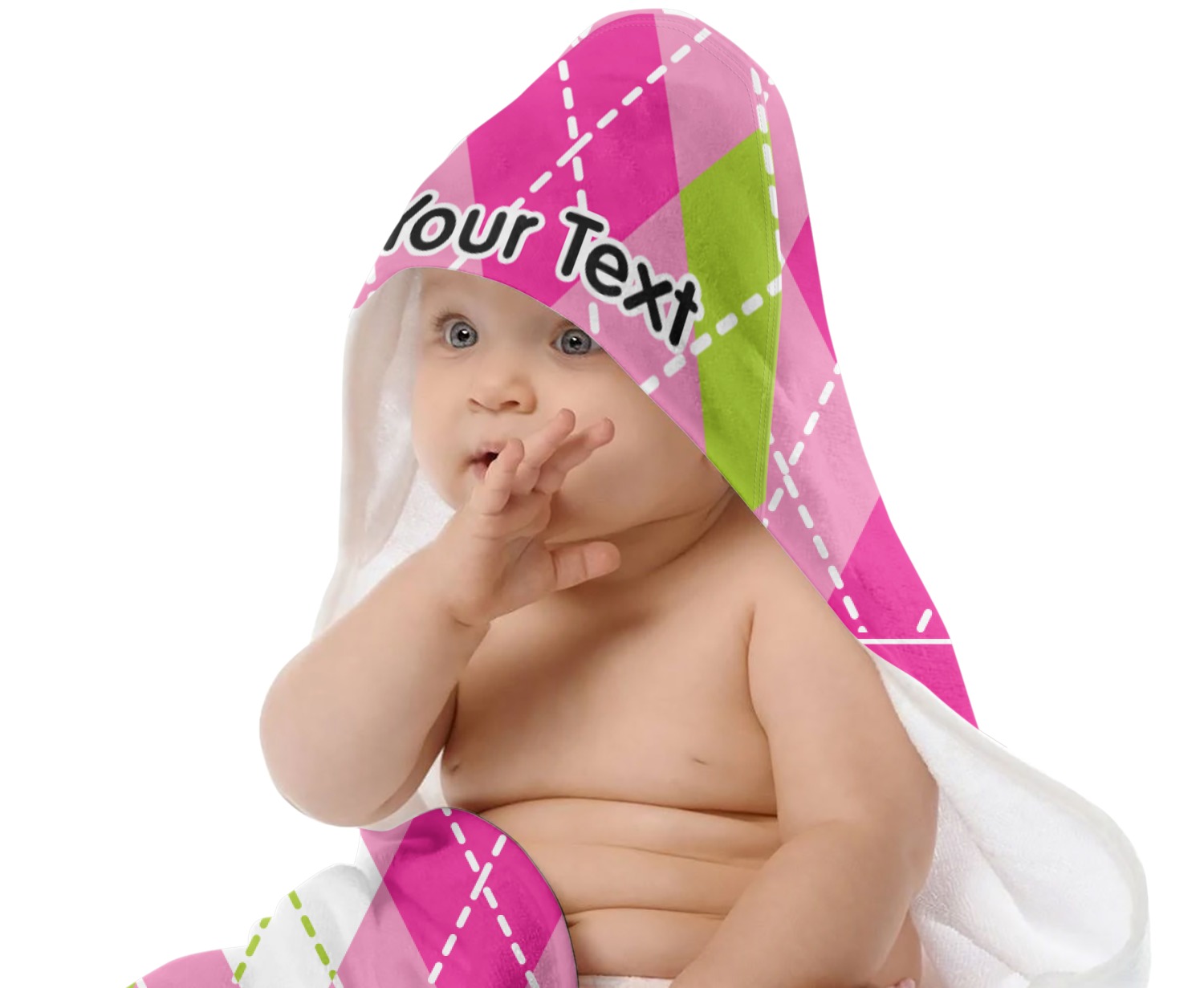 Looking for a preppy, yet still girly girl design? This pink and green argyle print with a square label and an interlocking monogram is as girly as it gets. We have created this argyle pattern in lime green, orchid pink and hot pink. For all of us girly girls and preppies and princesses, this design is a favorite!