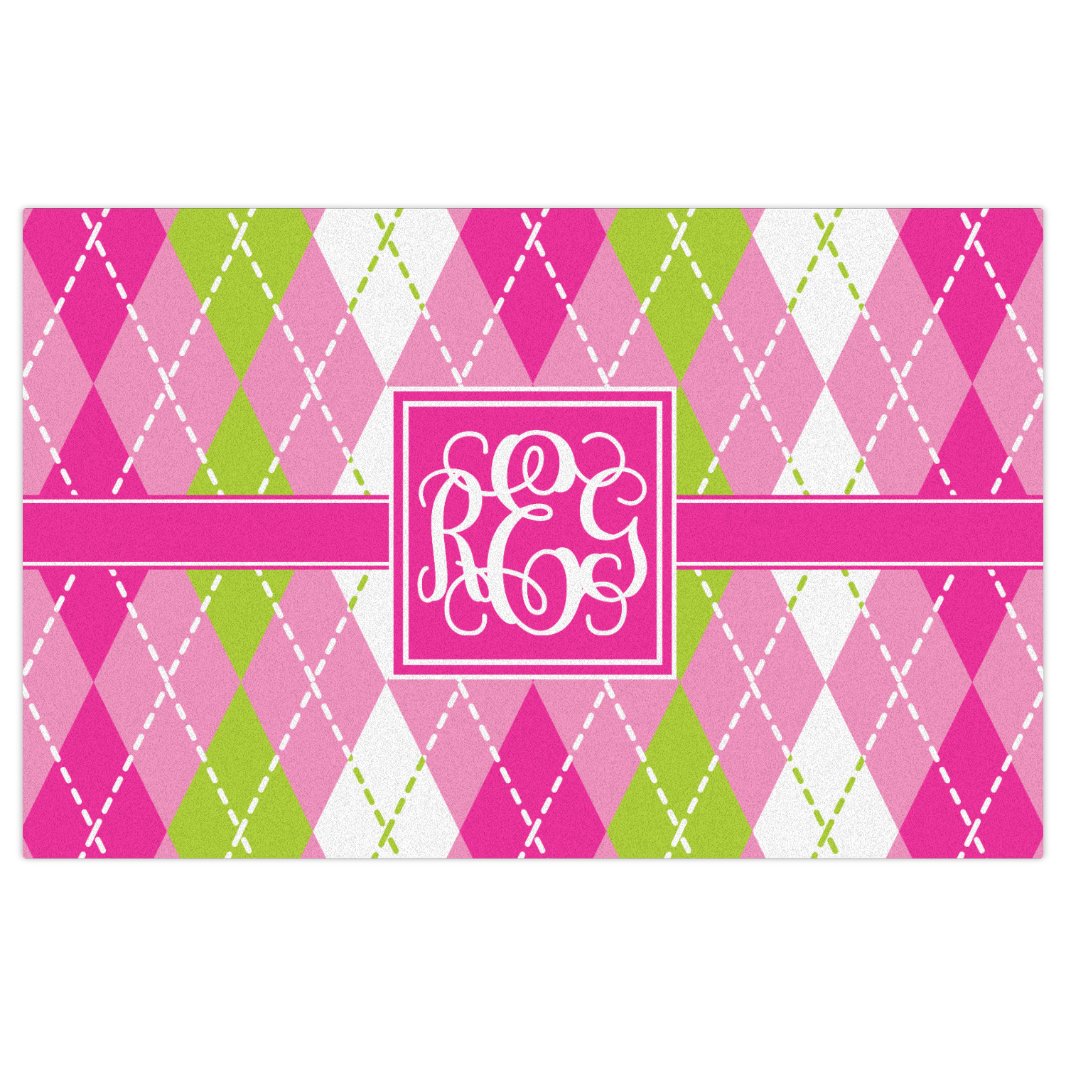 Looking for a preppy, yet still girly girl design? This pink and green argyle print with a square label and an interlocking monogram is as girly as it gets. We have created this argyle pattern in lime green, orchid pink and hot pink. For all of us girly girls and preppies and princesses, this design is a favorite!