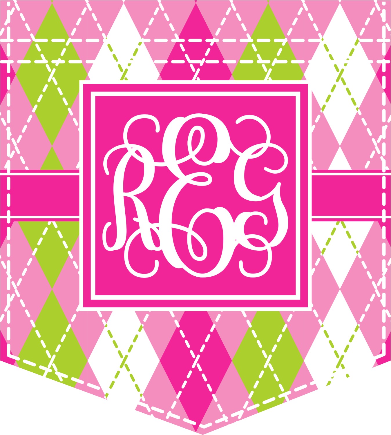 Looking for a preppy, yet still girly girl design? This pink and green argyle print with a square label and an interlocking monogram is as girly as it gets. We have created this argyle pattern in lime green, orchid pink and hot pink. For all of us girly girls and preppies and princesses, this design is a favorite!