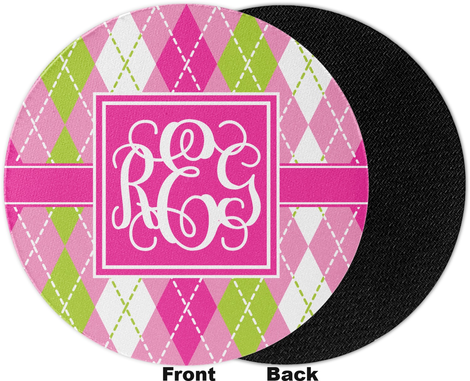 Looking for a preppy, yet still girly girl design? This pink and green argyle print with a square label and an interlocking monogram is as girly as it gets. We have created this argyle pattern in lime green, orchid pink and hot pink. For all of us girly girls and preppies and princesses, this design is a favorite!