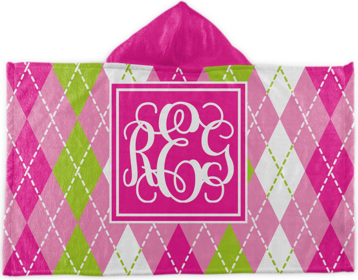 Looking for a preppy, yet still girly girl design? This pink and green argyle print with a square label and an interlocking monogram is as girly as it gets. We have created this argyle pattern in lime green, orchid pink and hot pink. For all of us girly girls and preppies and princesses, this design is a favorite!