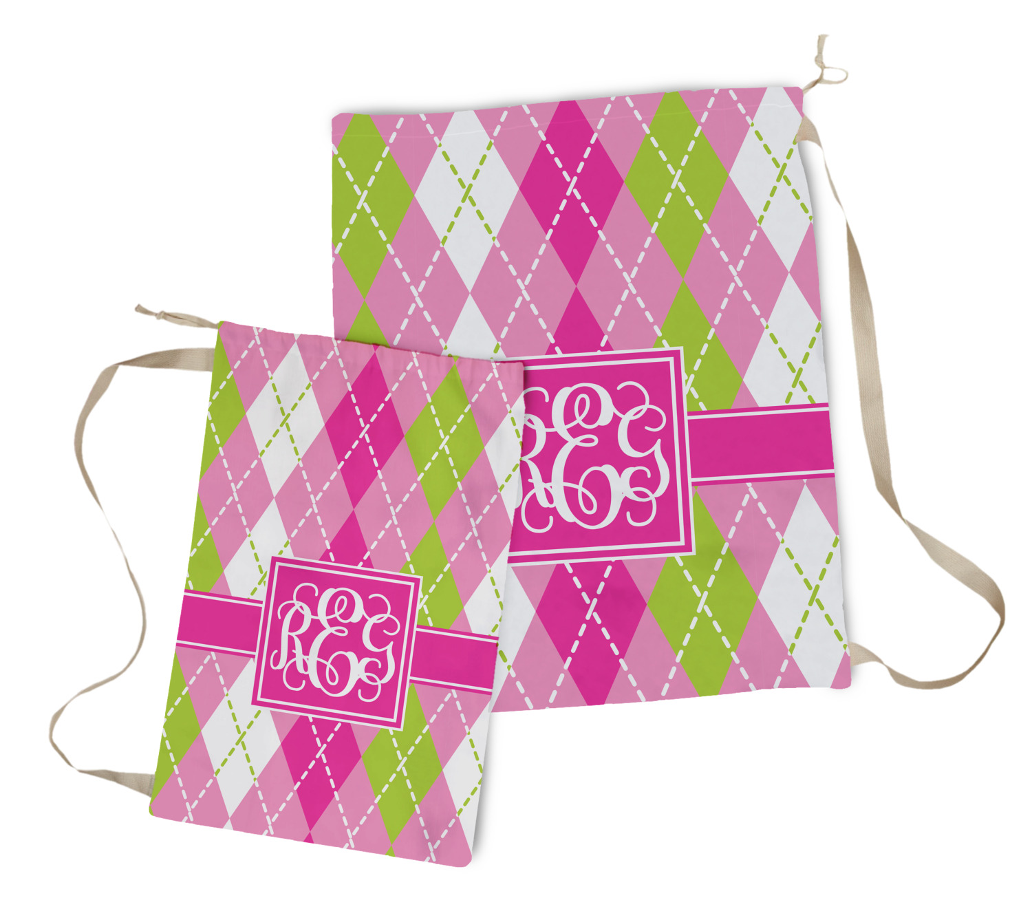 Looking for a preppy, yet still girly girl design? This pink and green argyle print with a square label and an interlocking monogram is as girly as it gets. We have created this argyle pattern in lime green, orchid pink and hot pink. For all of us girly girls and preppies and princesses, this design is a favorite!