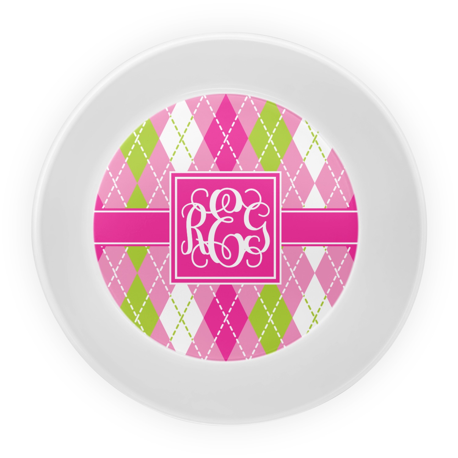 Looking for a preppy, yet still girly girl design? This pink and green argyle print with a square label and an interlocking monogram is as girly as it gets. We have created this argyle pattern in lime green, orchid pink and hot pink. For all of us girly girls and preppies and princesses, this design is a favorite!