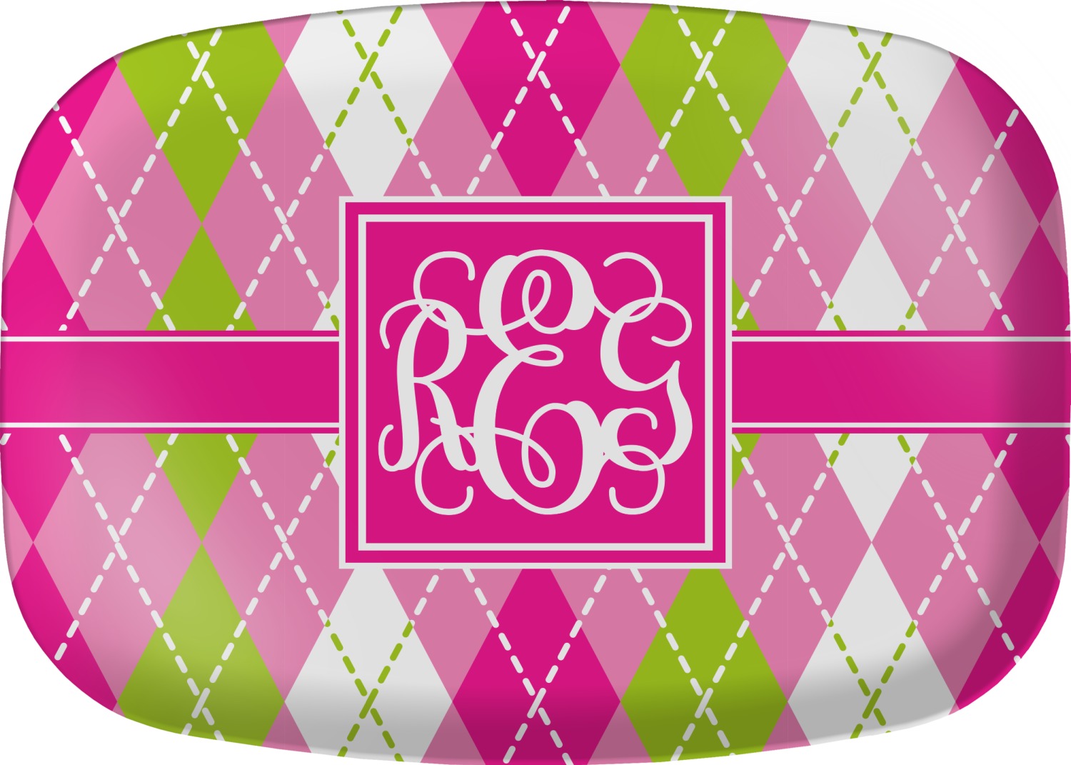 Looking for a preppy, yet still girly girl design? This pink and green argyle print with a square label and an interlocking monogram is as girly as it gets. We have created this argyle pattern in lime green, orchid pink and hot pink. For all of us girly girls and preppies and princesses, this design is a favorite!