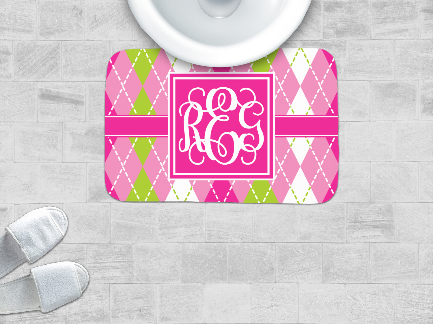Looking for a preppy, yet still girly girl design? This pink and green argyle print with a square label and an interlocking monogram is as girly as it gets. We have created this argyle pattern in lime green, orchid pink and hot pink. For all of us girly girls and preppies and princesses, this design is a favorite!
