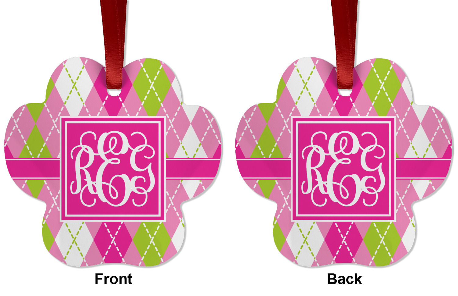 Looking for a preppy, yet still girly girl design? This pink and green argyle print with a square label and an interlocking monogram is as girly as it gets. We have created this argyle pattern in lime green, orchid pink and hot pink. For all of us girly girls and preppies and princesses, this design is a favorite!