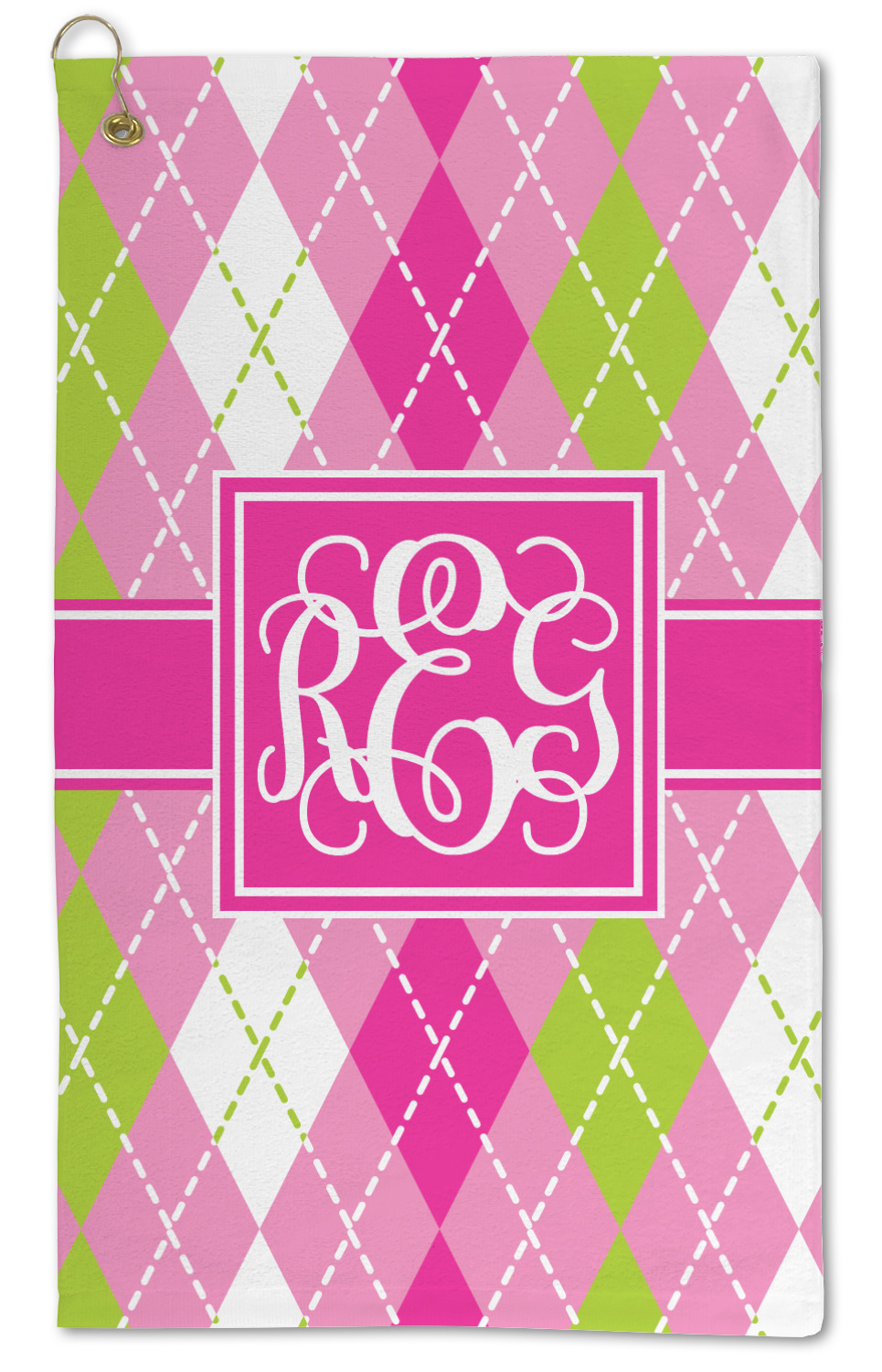 Looking for a preppy, yet still girly girl design? This pink and green argyle print with a square label and an interlocking monogram is as girly as it gets. We have created this argyle pattern in lime green, orchid pink and hot pink. For all of us girly girls and preppies and princesses, this design is a favorite!