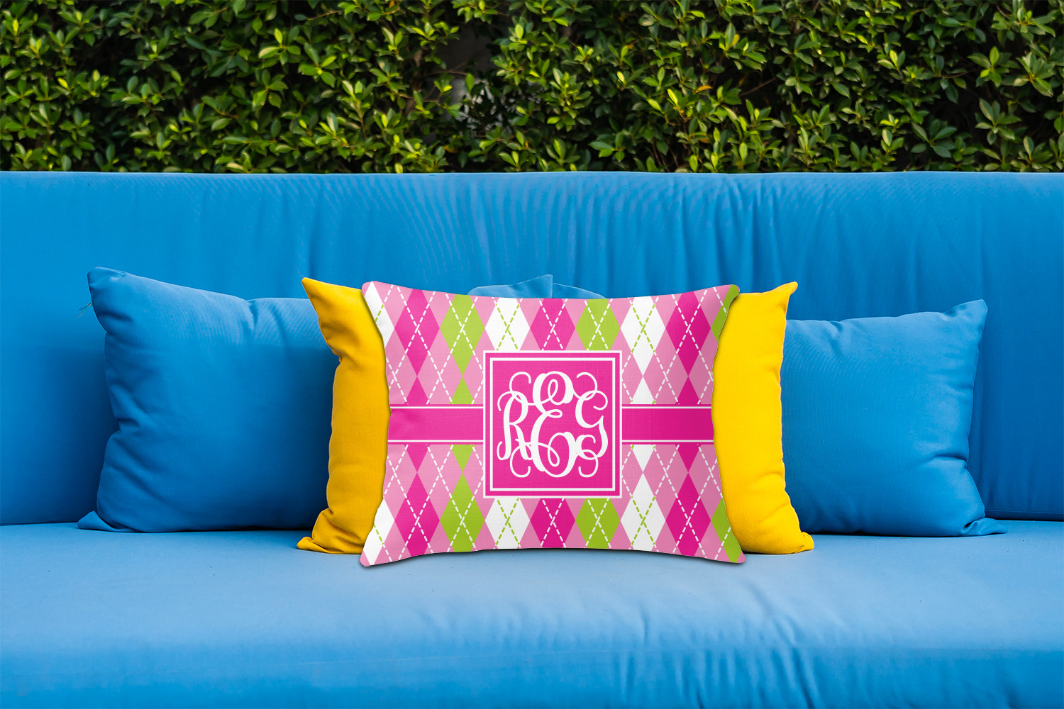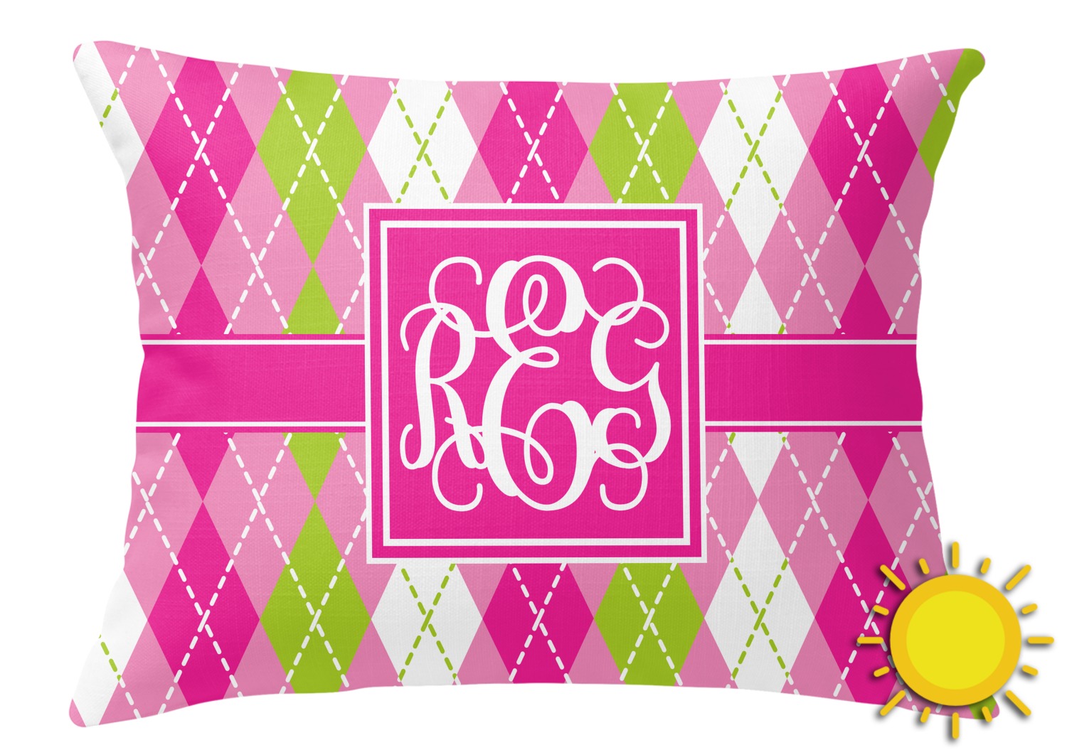 Looking for a preppy, yet still girly girl design? This pink and green argyle print with a square label and an interlocking monogram is as girly as it gets. We have created this argyle pattern in lime green, orchid pink and hot pink. For all of us girly girls and preppies and princesses, this design is a favorite!