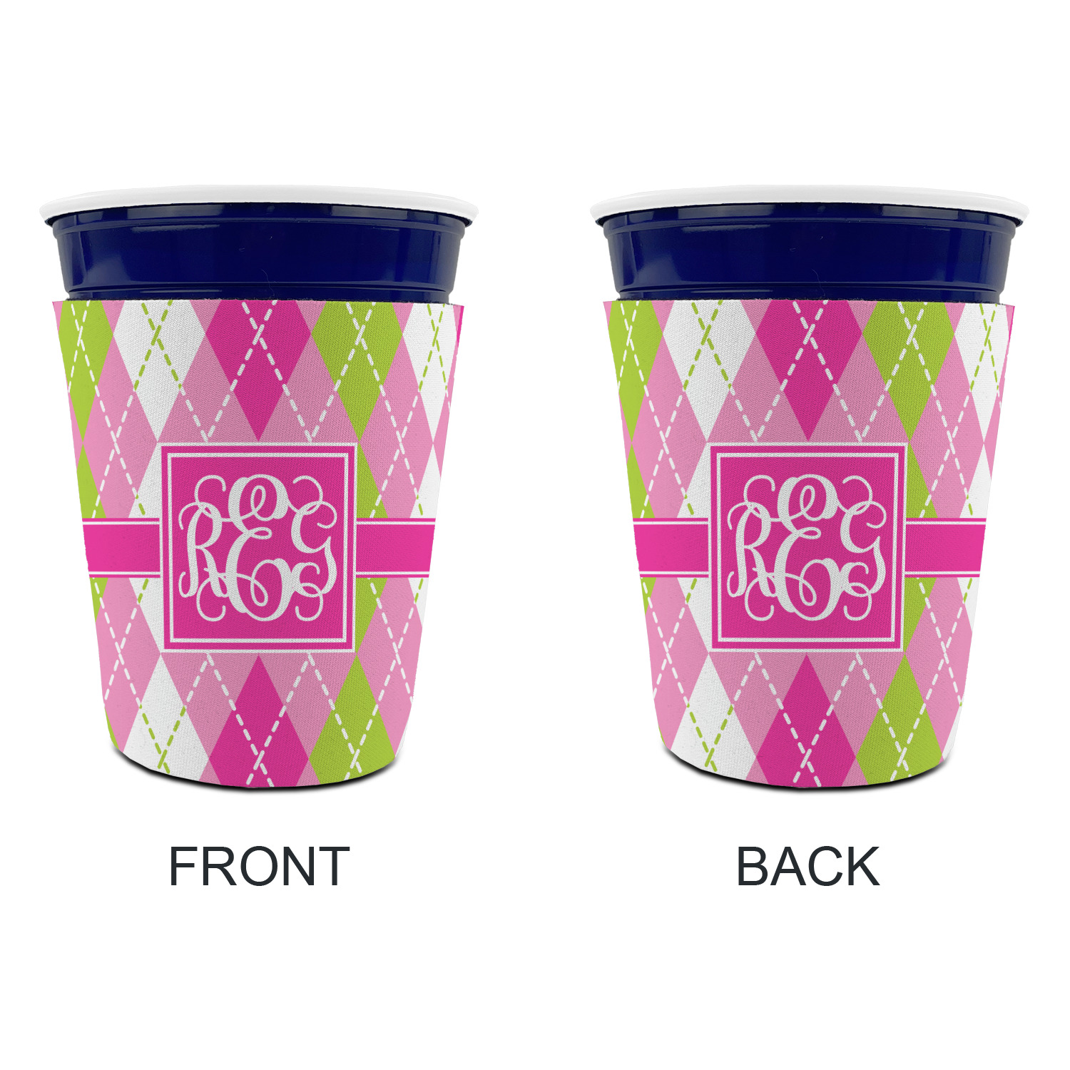 Made from neoprene with a polyester outer fabric and sewn seams, these premium quality party cup sleeves are very durable and will hold up to heavy use. They are available in 2 styles - with a bottom or just a sleeve to go around the outside of the tapered cup. The sleeve covers are about 4" tall and cover about 90% of the classic 16 oz. Solo cup.
