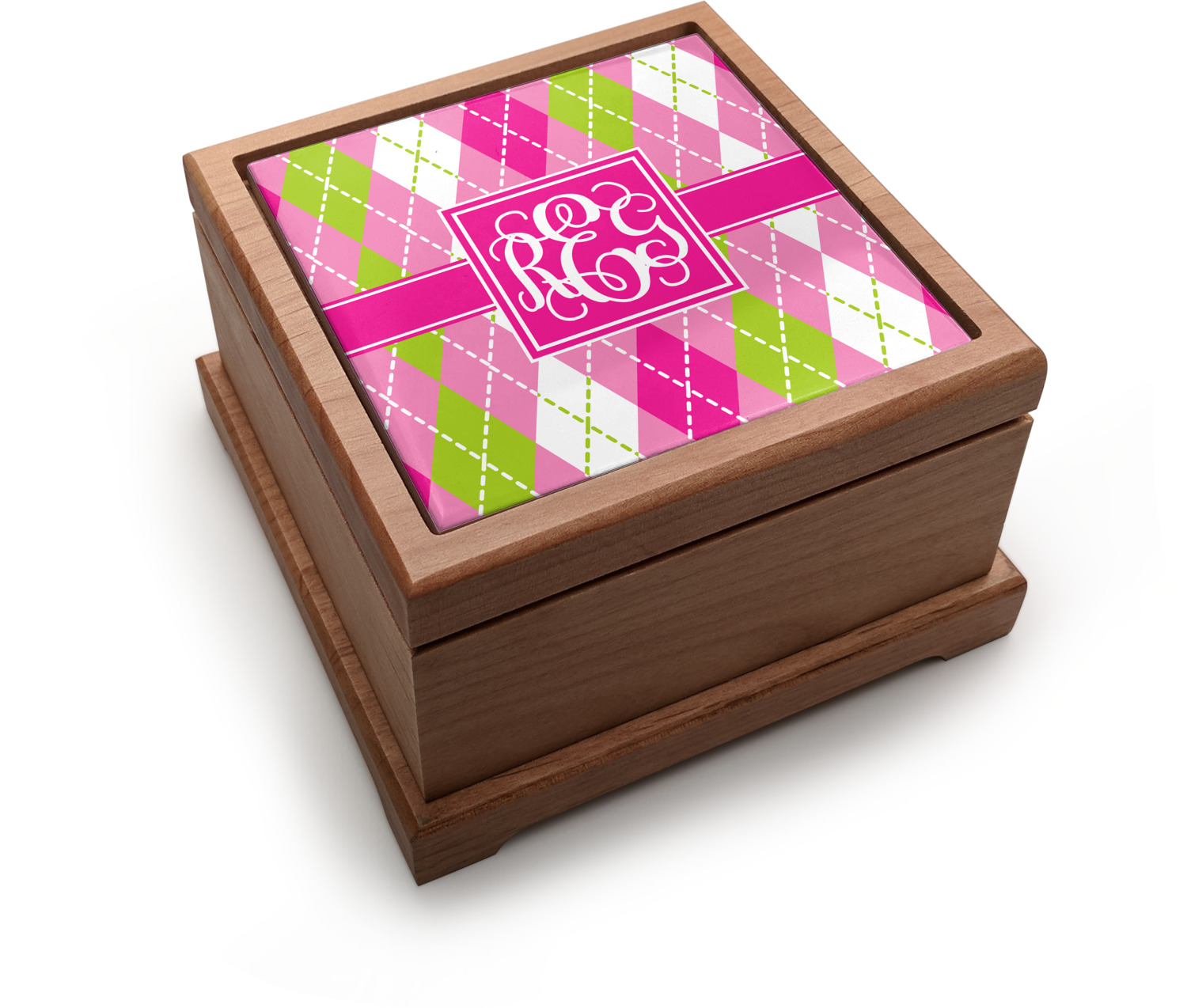 Looking for a preppy, yet still girly girl design? This pink and green argyle print with a square label and an interlocking monogram is as girly as it gets. We have created this argyle pattern in lime green, orchid pink and hot pink. For all of us girly girls and preppies and princesses, this design is a favorite!