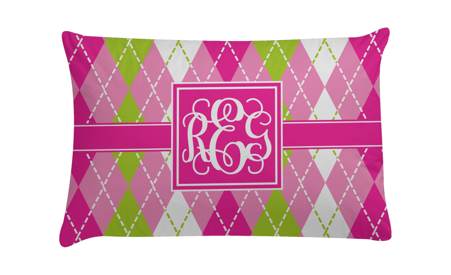 Looking for a preppy, yet still girly girl design? This pink and green argyle print with a square label and an interlocking monogram is as girly as it gets. We have created this argyle pattern in lime green, orchid pink and hot pink. For all of us girly girls and preppies and princesses, this design is a favorite!