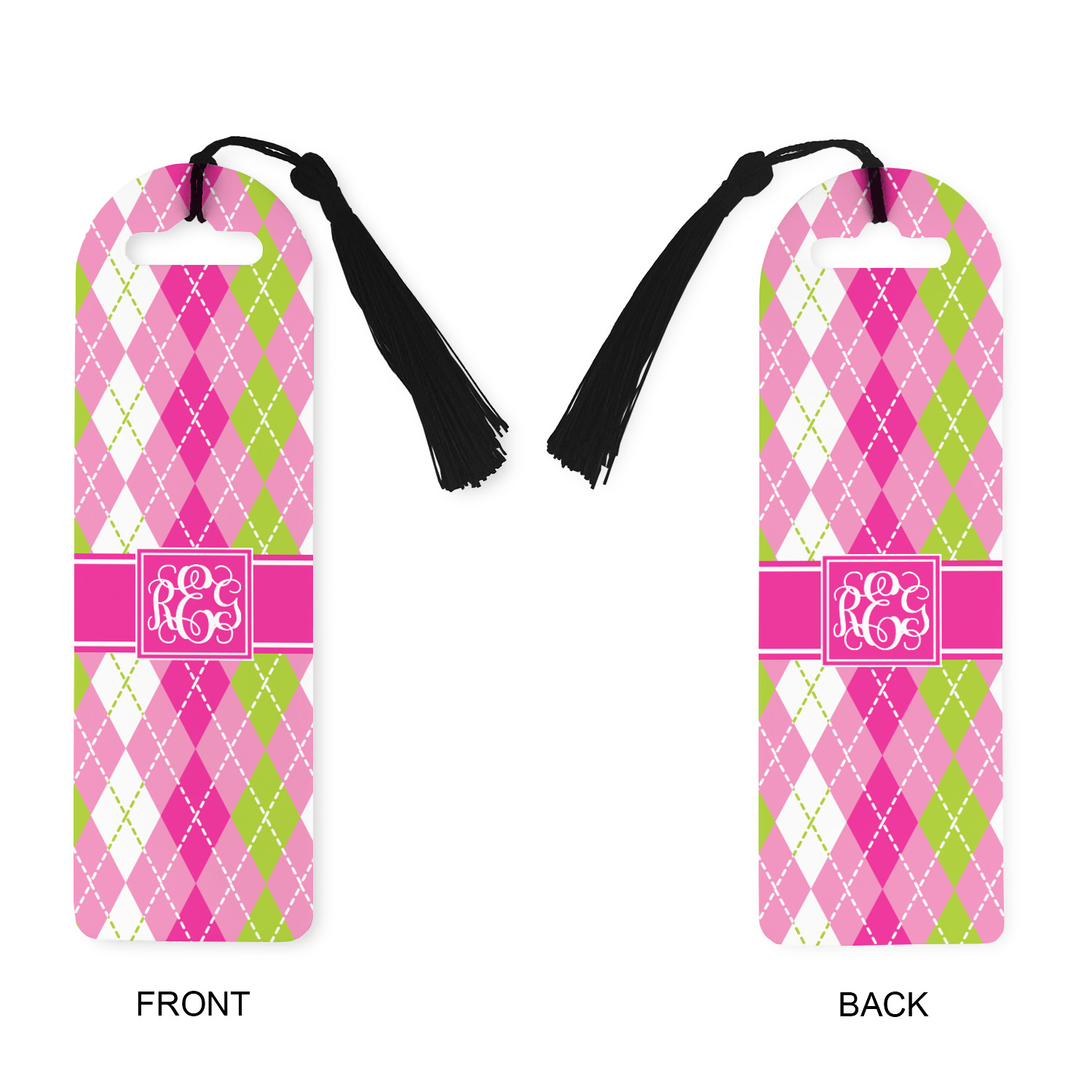 Made from a durable, flexible plastic, these bookmarks are printed with your custom design on them. With the tassel on them they make it easy to find your page in your book. These are a rectangular shape 7 1/4 inches tall with a rounded top and are approximately 2 1/4 inches wide.