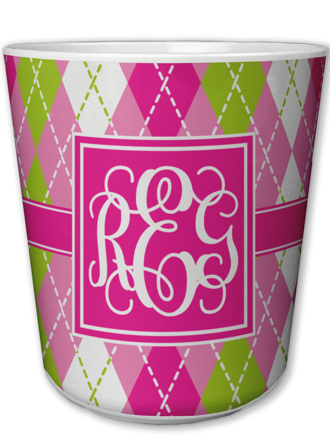 Looking for a preppy, yet still girly girl design? This pink and green argyle print with a square label and an interlocking monogram is as girly as it gets. We have created this argyle pattern in lime green, orchid pink and hot pink. For all of us girly girls and preppies and princesses, this design is a favorite!