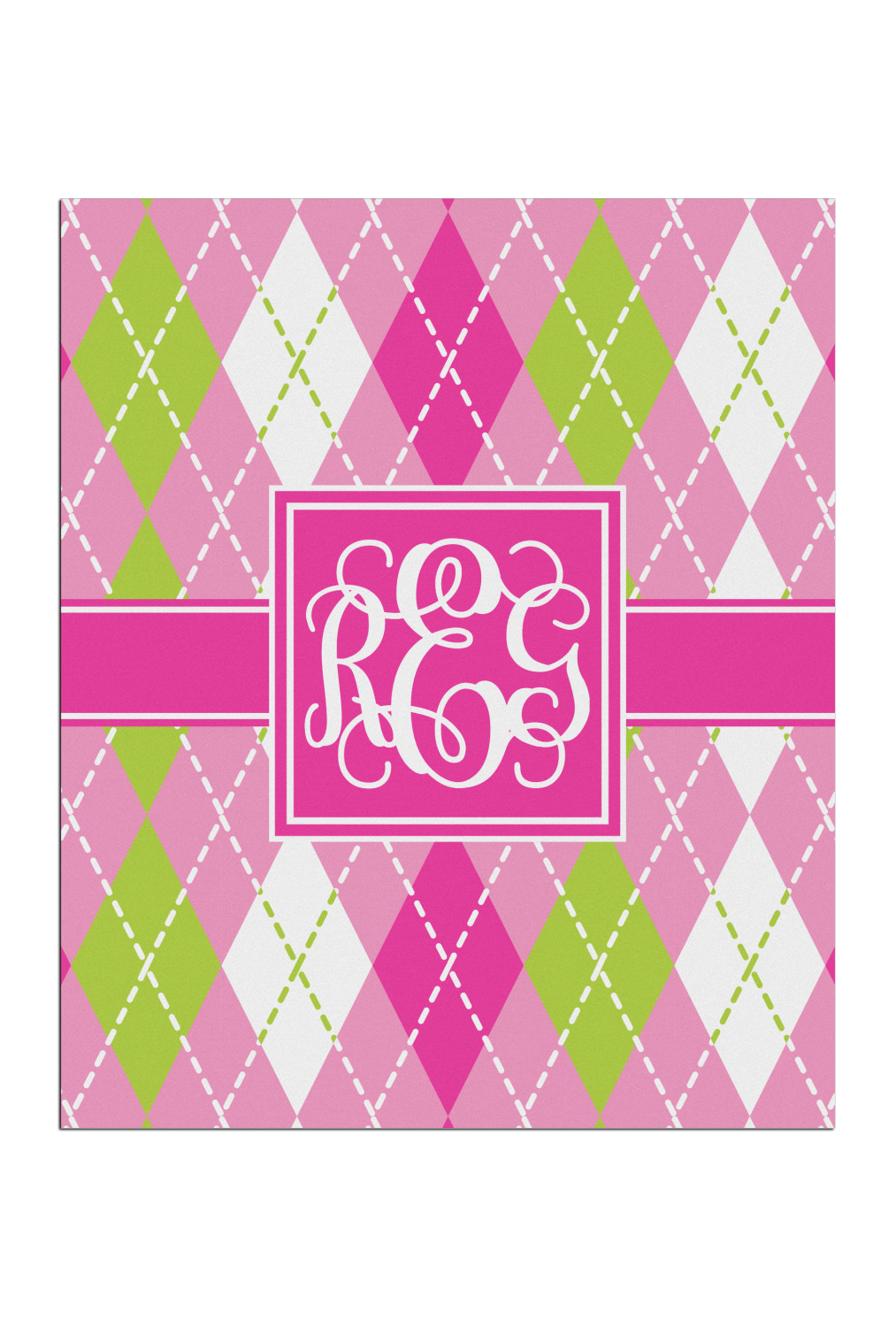 Looking for a preppy, yet still girly girl design? This pink and green argyle print with a square label and an interlocking monogram is as girly as it gets. We have created this argyle pattern in lime green, orchid pink and hot pink. For all of us girly girls and preppies and princesses, this design is a favorite!