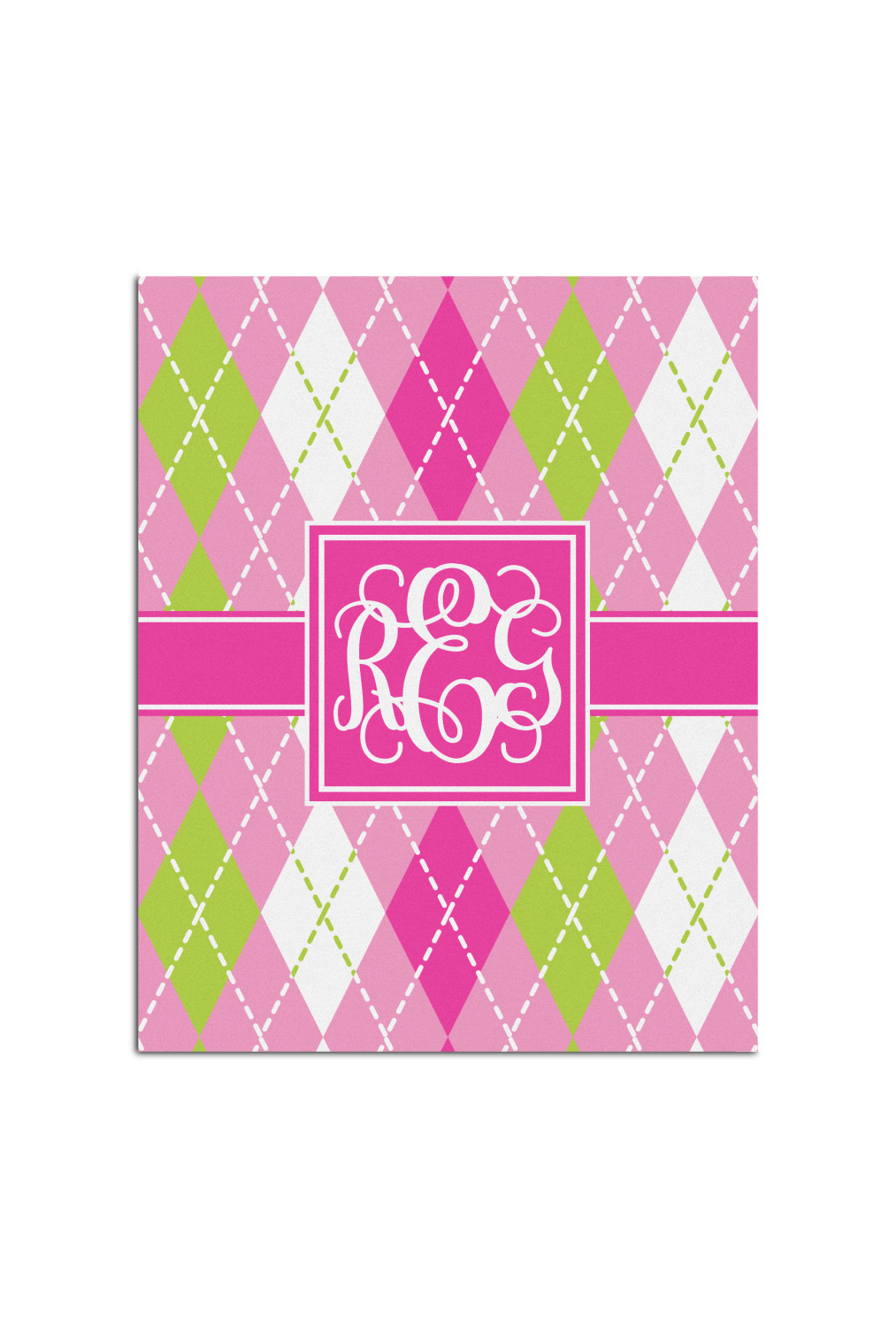 Looking for a preppy, yet still girly girl design? This pink and green argyle print with a square label and an interlocking monogram is as girly as it gets. We have created this argyle pattern in lime green, orchid pink and hot pink. For all of us girly girls and preppies and princesses, this design is a favorite!