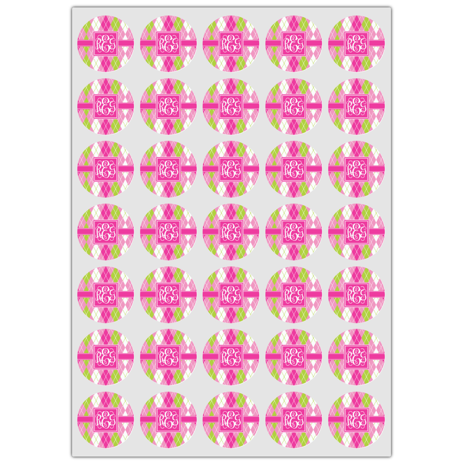 Looking for a preppy, yet still girly girl design? This pink and green argyle print with a square label and an interlocking monogram is as girly as it gets. We have created this argyle pattern in lime green, orchid pink and hot pink. For all of us girly girls and preppies and princesses, this design is a favorite!