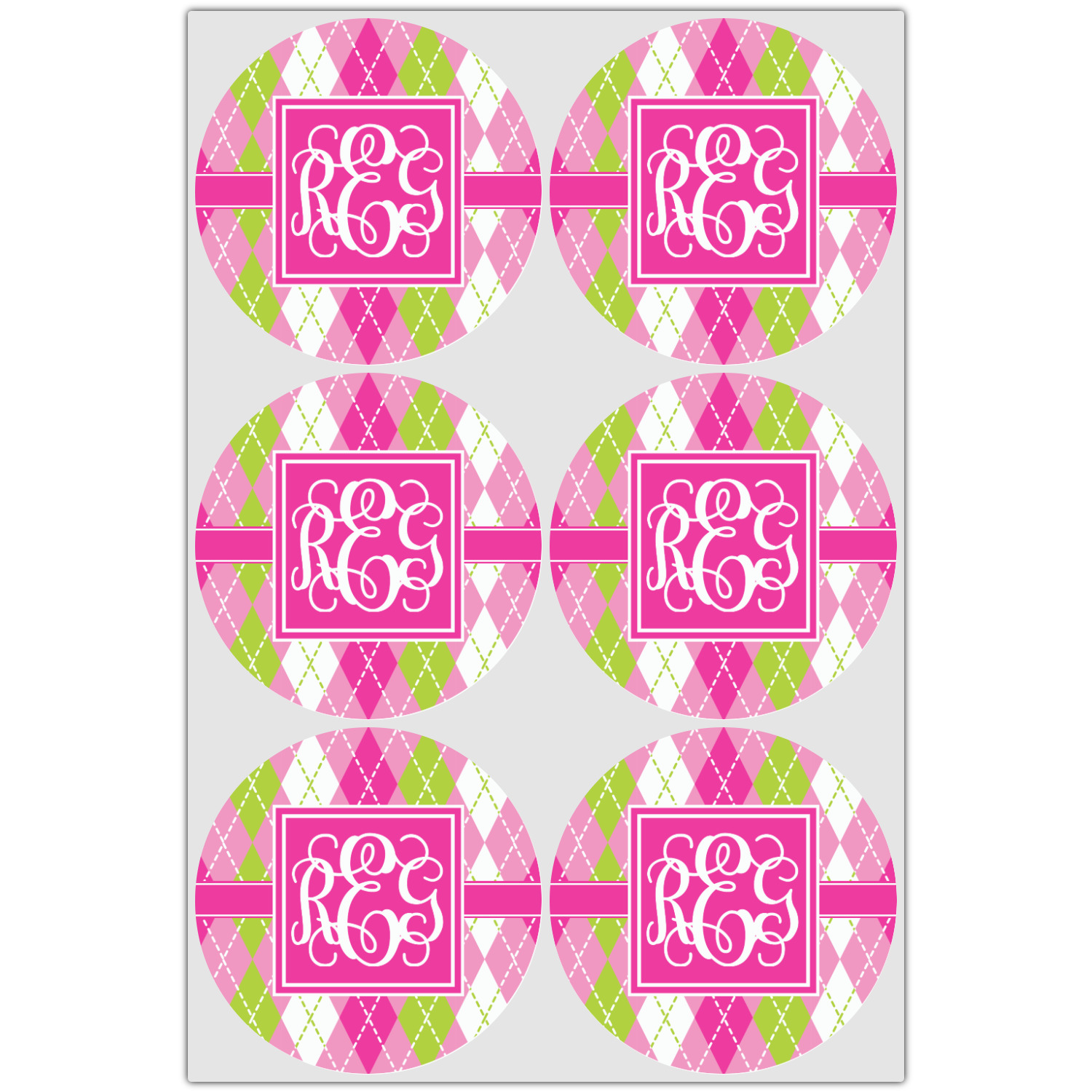 Looking for a preppy, yet still girly girl design? This pink and green argyle print with a square label and an interlocking monogram is as girly as it gets. We have created this argyle pattern in lime green, orchid pink and hot pink. For all of us girly girls and preppies and princesses, this design is a favorite!