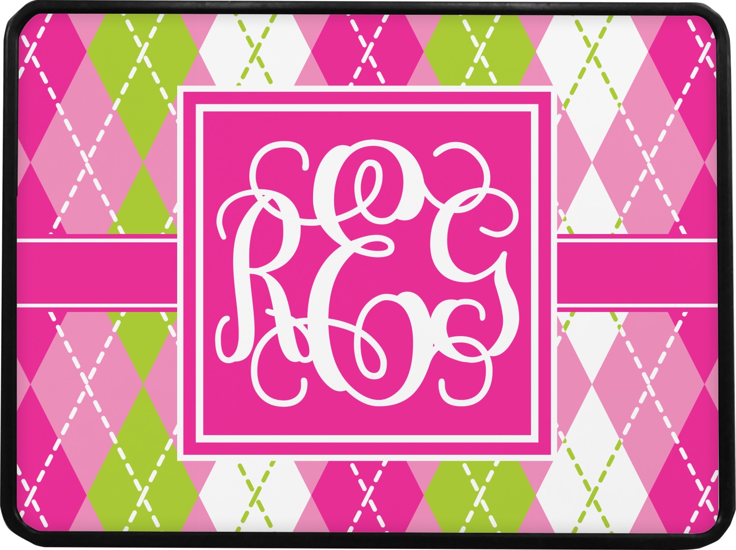 Looking for a preppy, yet still girly girl design? This pink and green argyle print with a square label and an interlocking monogram is as girly as it gets. We have created this argyle pattern in lime green, orchid pink and hot pink. For all of us girly girls and preppies and princesses, this design is a favorite!