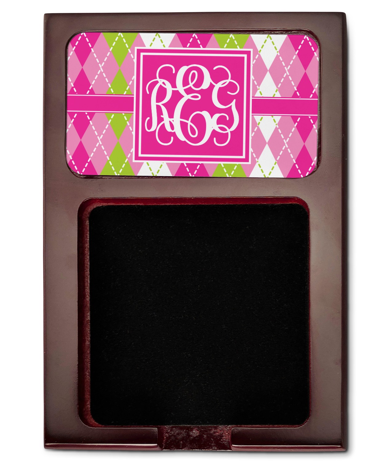 Looking for a preppy, yet still girly girl design? This pink and green argyle print with a square label and an interlocking monogram is as girly as it gets. We have created this argyle pattern in lime green, orchid pink and hot pink. For all of us girly girls and preppies and princesses, this design is a favorite!