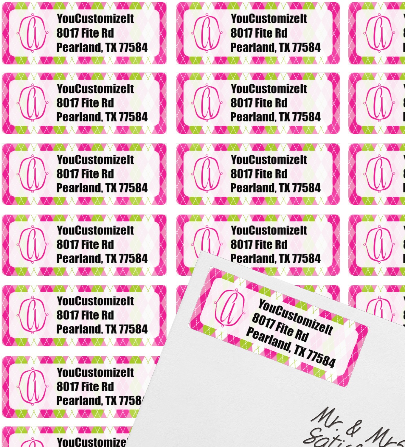 Looking for a preppy, yet still girly girl design? This pink and green argyle print with a square label and an interlocking monogram is as girly as it gets. We have created this argyle pattern in lime green, orchid pink and hot pink. For all of us girly girls and preppies and princesses, this design is a favorite!