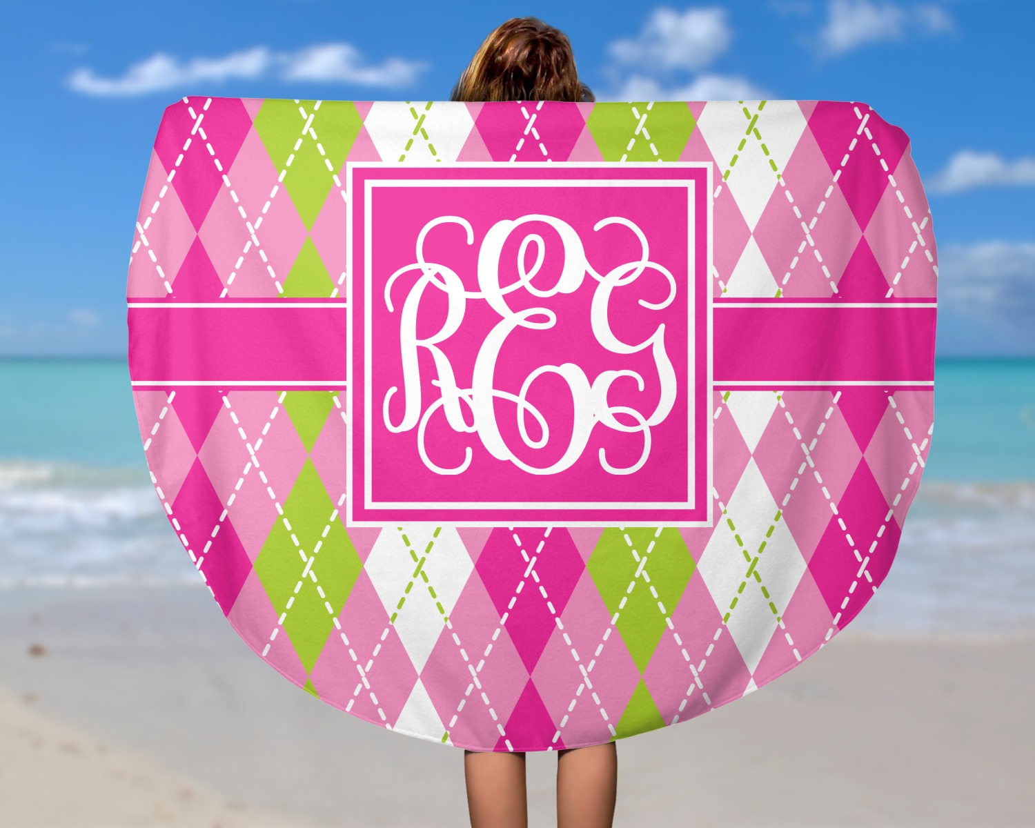 Think out of the box on your next beach, pool, or picnic day in style on your personalized round towel. This must have durable accessory is the perfect size for keeping you, and your possessions out of the sand. Sprawl out in the sun without getting your hands dirty, the unique round design allows for a full range of motion.