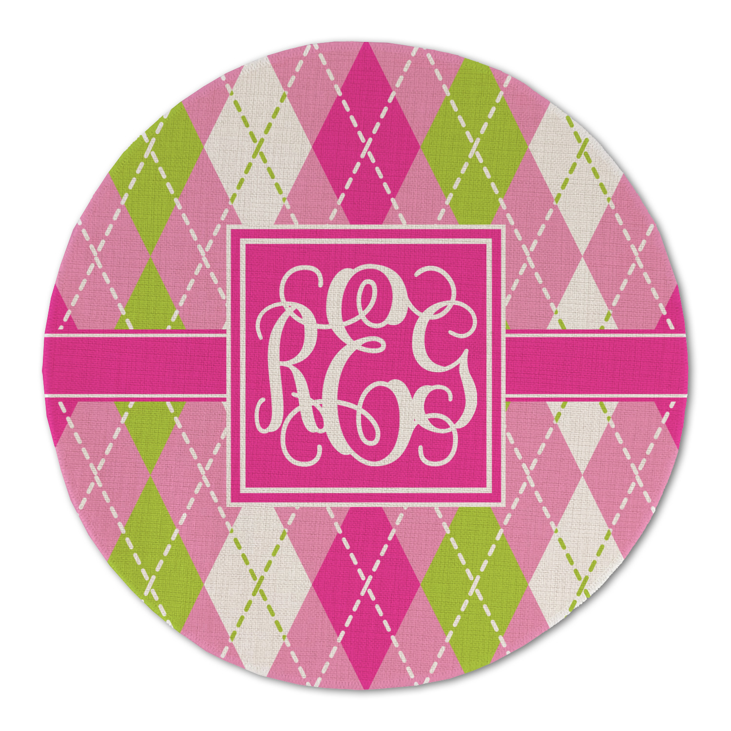 Looking for a preppy, yet still girly girl design? This pink and green argyle print with a square label and an interlocking monogram is as girly as it gets. We have created this argyle pattern in lime green, orchid pink and hot pink. For all of us girly girls and preppies and princesses, this design is a favorite!