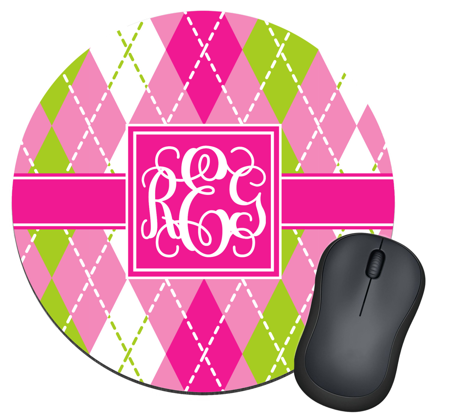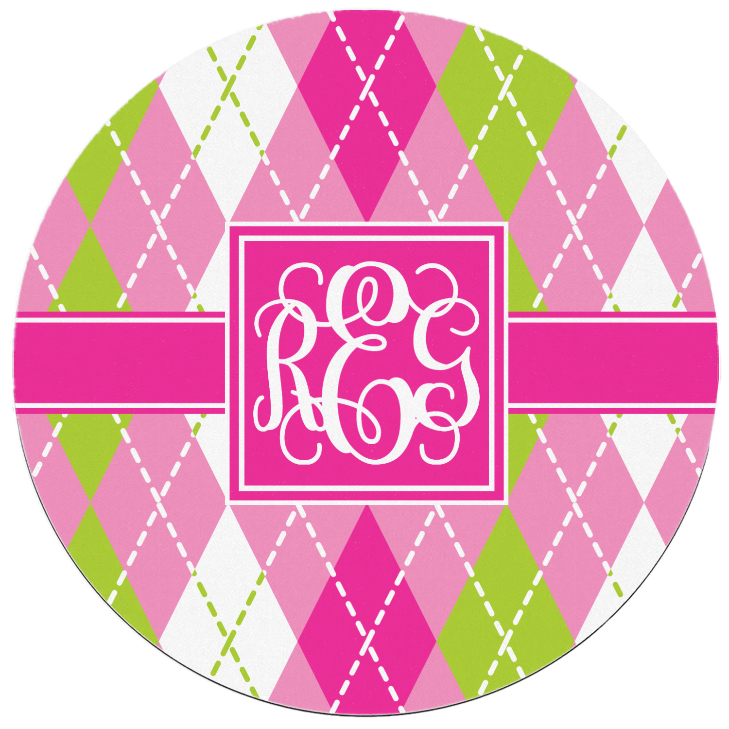 Looking for a preppy, yet still girly girl design? This pink and green argyle print with a square label and an interlocking monogram is as girly as it gets. We have created this argyle pattern in lime green, orchid pink and hot pink. For all of us girly girls and preppies and princesses, this design is a favorite!