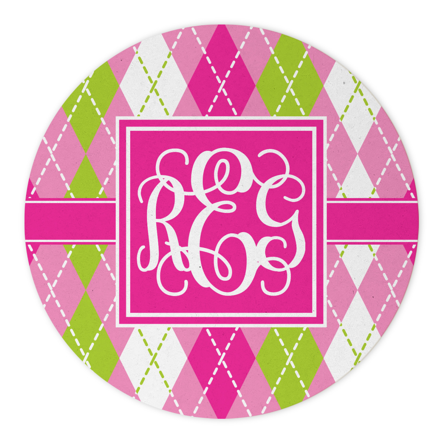 Looking for a preppy, yet still girly girl design? This pink and green argyle print with a square label and an interlocking monogram is as girly as it gets. We have created this argyle pattern in lime green, orchid pink and hot pink. For all of us girly girls and preppies and princesses, this design is a favorite!