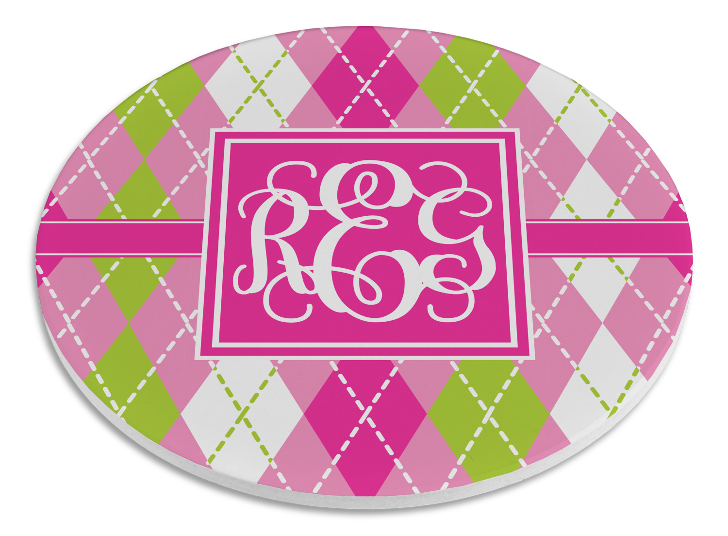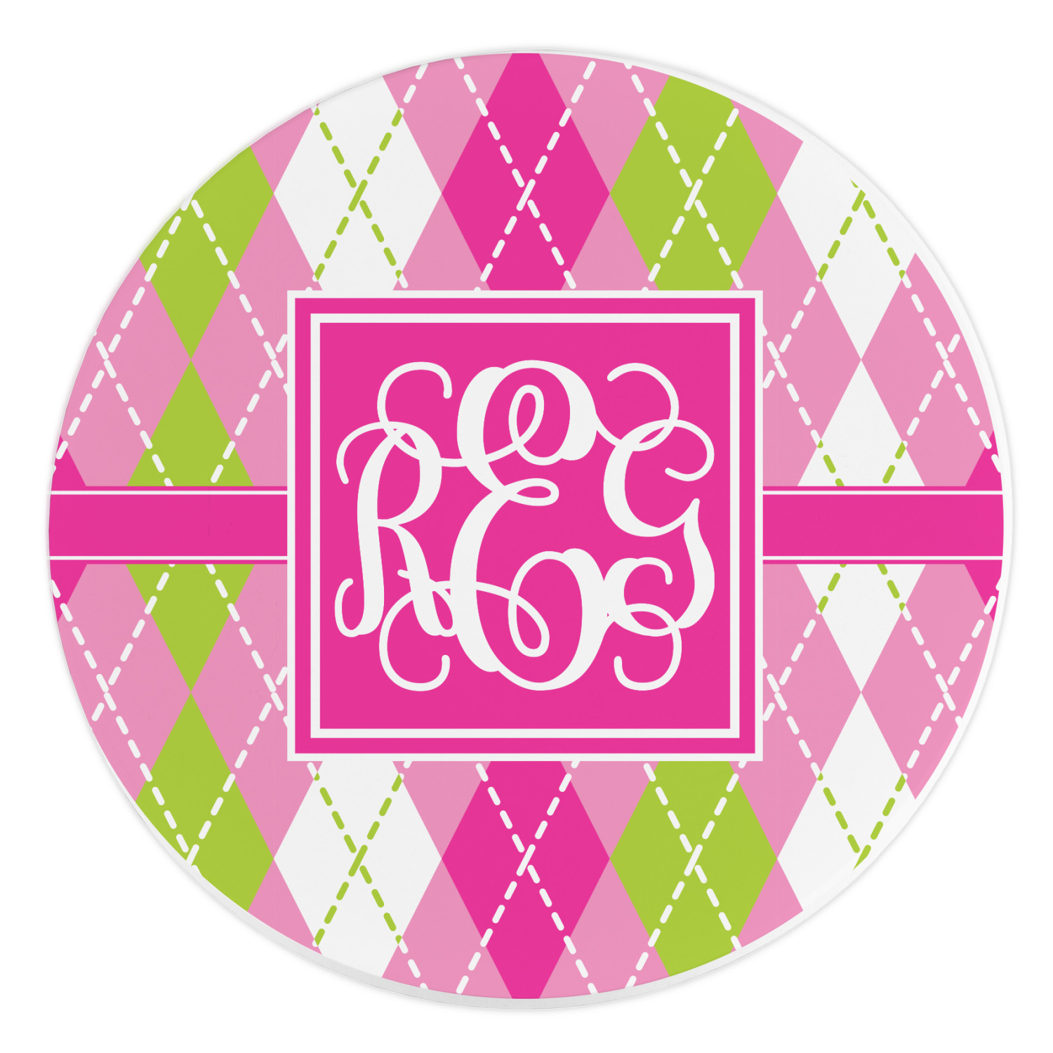 Looking for a preppy, yet still girly girl design? This pink and green argyle print with a square label and an interlocking monogram is as girly as it gets. We have created this argyle pattern in lime green, orchid pink and hot pink. For all of us girly girls and preppies and princesses, this design is a favorite!