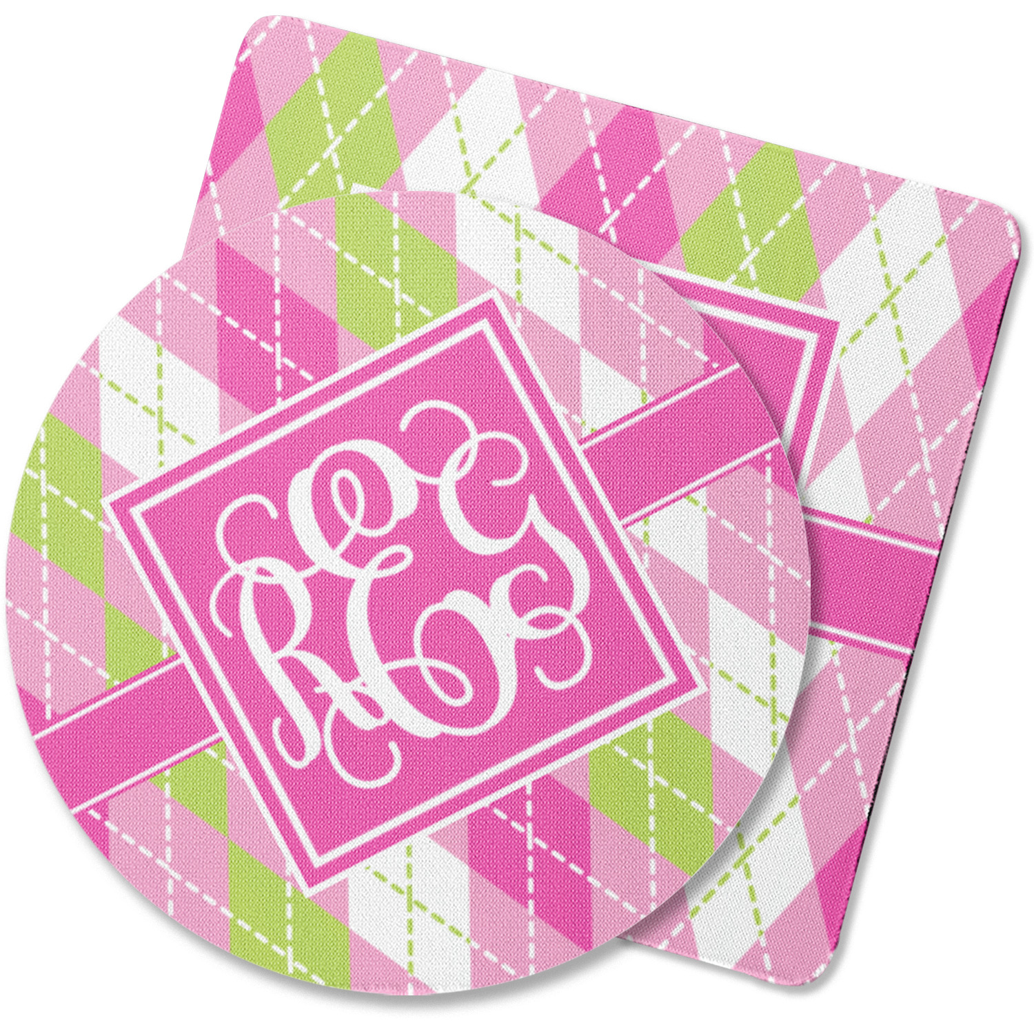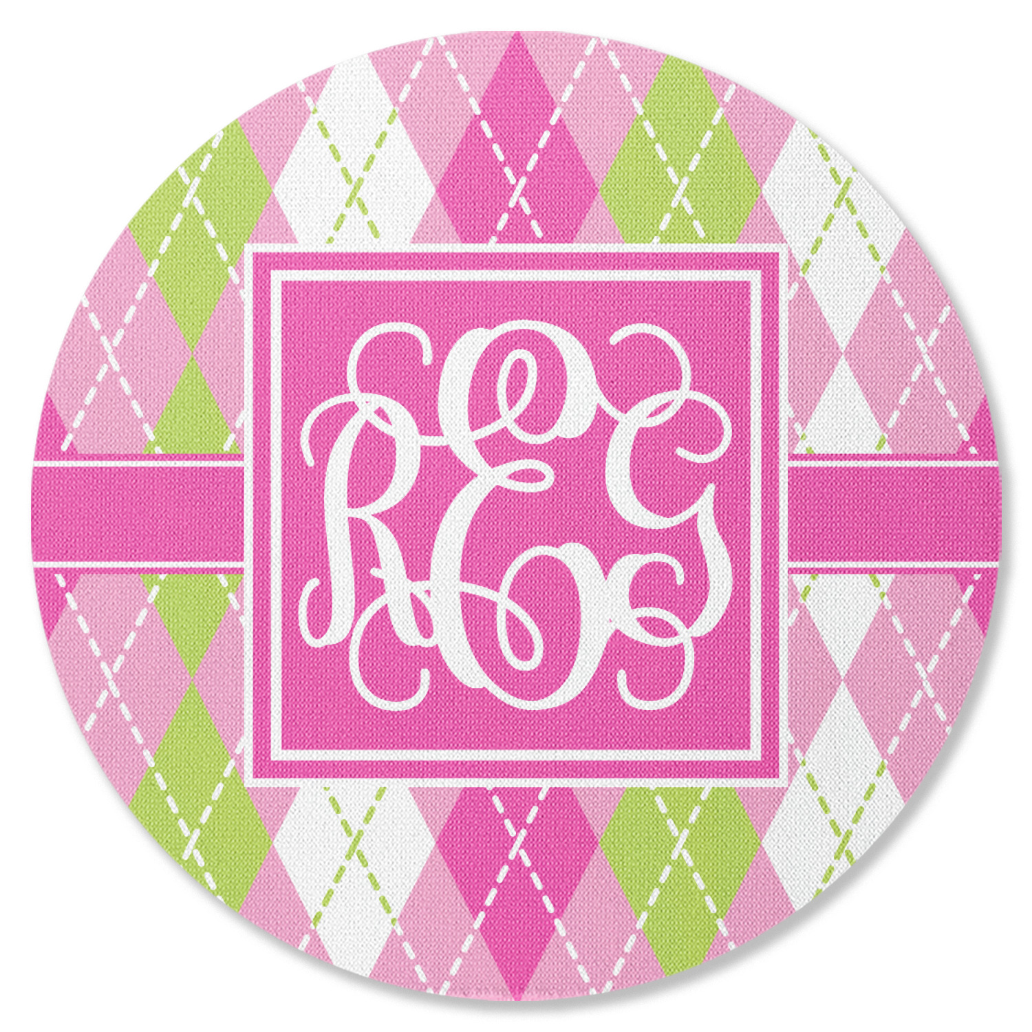 Looking for a preppy, yet still girly girl design? This pink and green argyle print with a square label and an interlocking monogram is as girly as it gets. We have created this argyle pattern in lime green, orchid pink and hot pink. For all of us girly girls and preppies and princesses, this design is a favorite!
