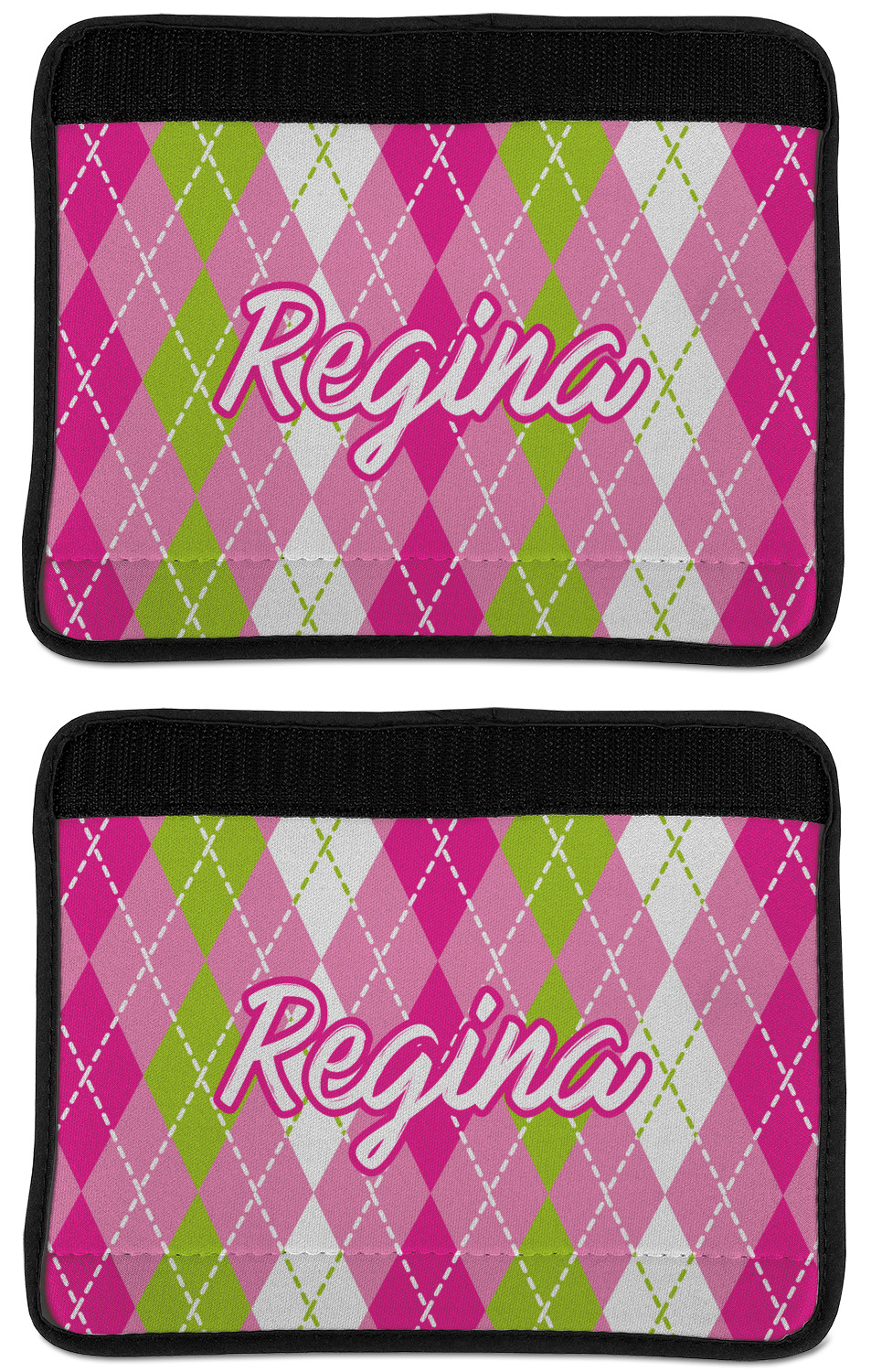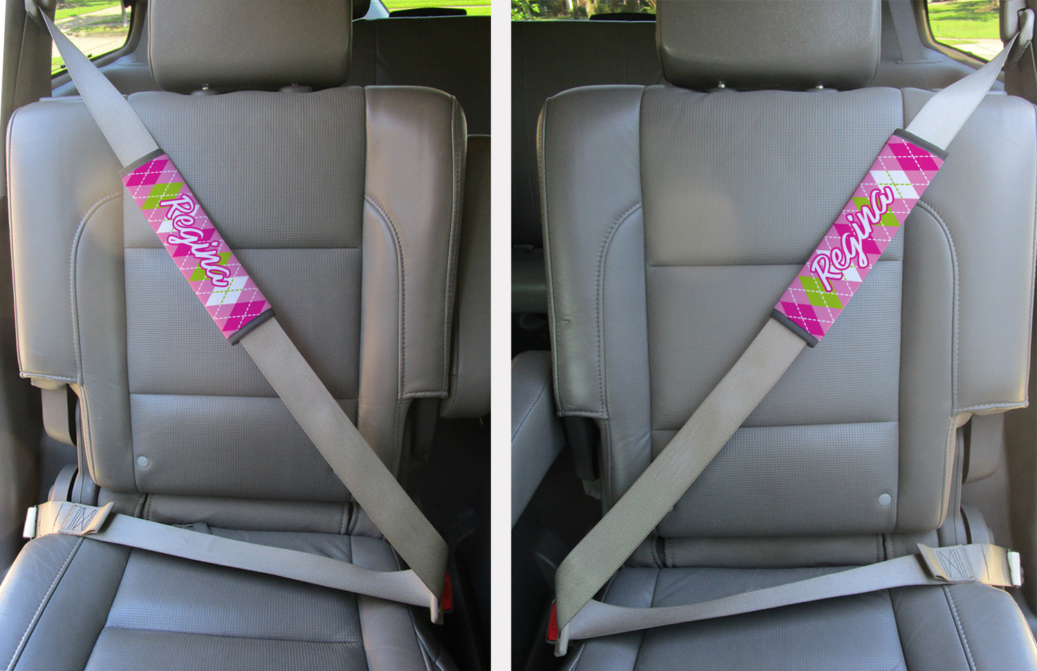 Made from neoprene, our seat belt strap covers wrap around the belt itself and have a Velcro tab for easy attachment and closure. The belt's edges are trimmed with a black polyester for a secure finish. Each cover is 9.5 by 7 inches when open and 9.5 by 2.5 inches when closed. We print your personalized design on the face of the seat belt pad.