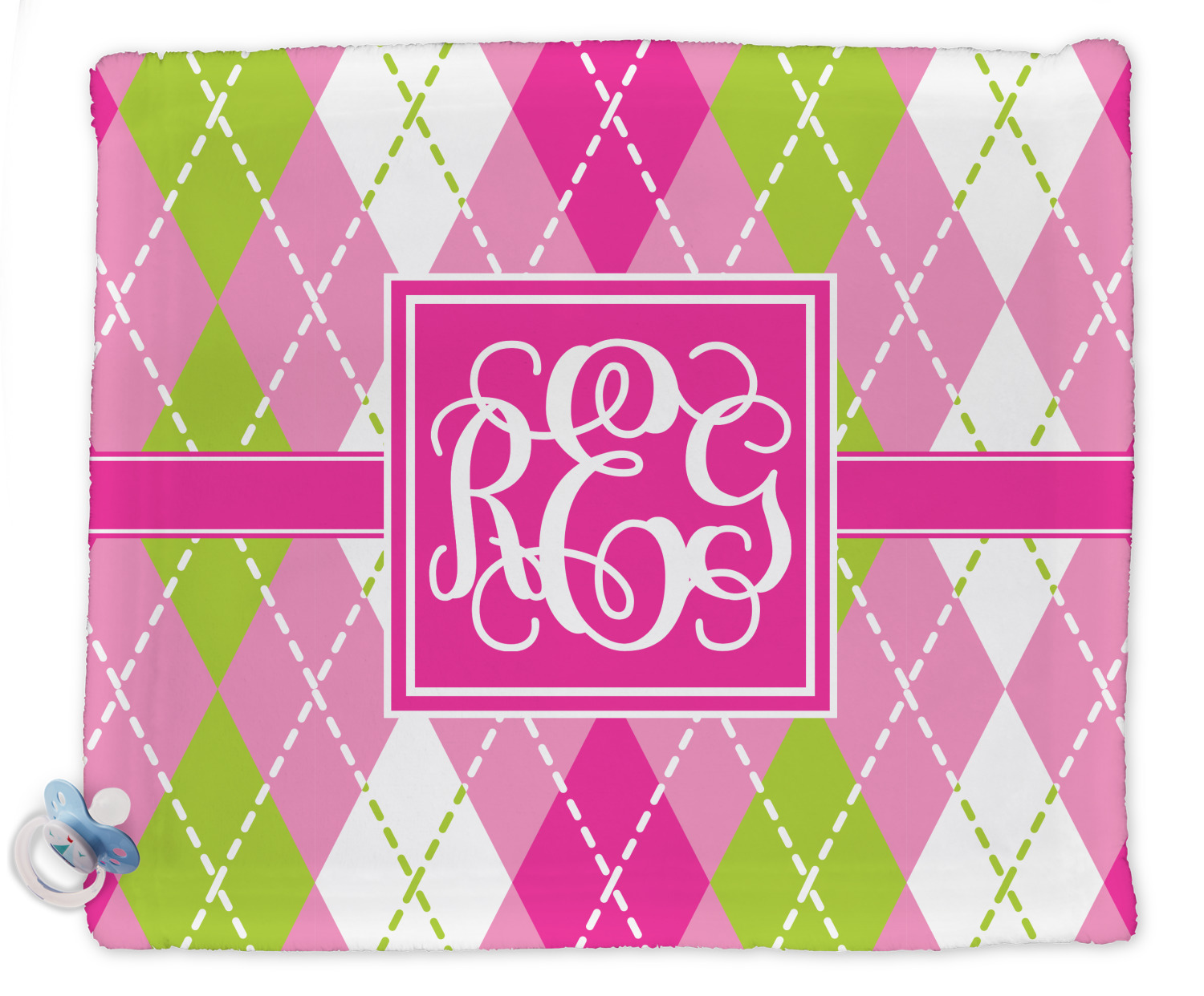 Looking for a preppy, yet still girly girl design? This pink and green argyle print with a square label and an interlocking monogram is as girly as it gets. We have created this argyle pattern in lime green, orchid pink and hot pink. For all of us girly girls and preppies and princesses, this design is a favorite!